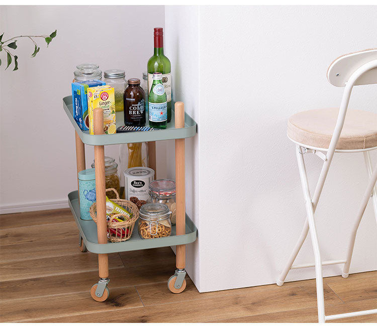 ワゴン 2段 2D マルチワゴン キッチンワゴン サイドテーブル ナイトテーブル ベッドサイド キャスター トレー 木製 天然木 北欧 ナチュラル シンプル かわいい 収納 収納棚 棚 ラック マルチラック(代引不可)