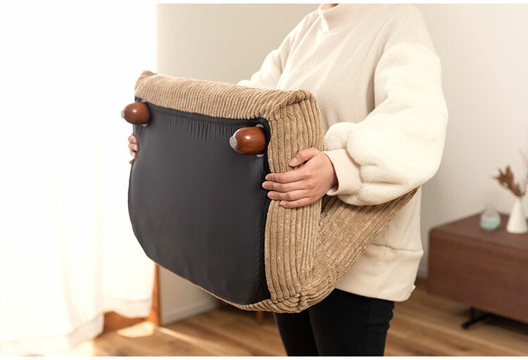 ●小さくてもゆったりと座ることができるワイドチェア。●折りたたみが可能で持ち運びや収納ができます。●座面裏の前側にのみ丸みのある天然木の脚を使用。可愛いデザイン性と共に、後ろに少しだけ傾斜した座面がソファのようにゆったりと座れるよう工夫された設計。●ほど良い座面の高さは、お昼寝用のゴロ寝枕としてもおすすめです。●脚裏にはフェルトが付いているので、床への傷防止にもなり安心です。●ふっくらとした弾力のある座面がしっかりと体を支えてくれます。