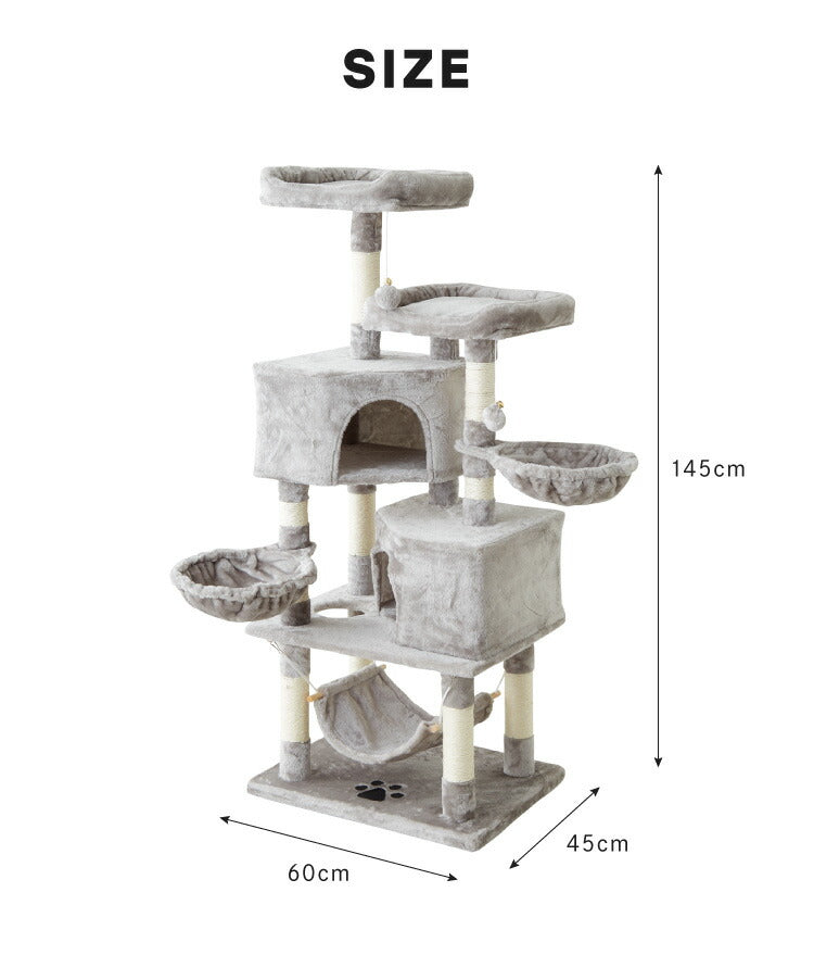 キャットタワー、キャットハウス、キャットウォーク、キャットツリー、猫タワー、据え置き、ハウス、ハンモック、猫、ねこ、爪とぎ、つめとぎ、ベッド、おもちゃ、多頭飼い、シンプル、かわいい、インテリア、ペット、ペット用品、猫用品、省スペース、置き型、登りやすい、低ホルムアルデヒド、エコテックス、FSC認証