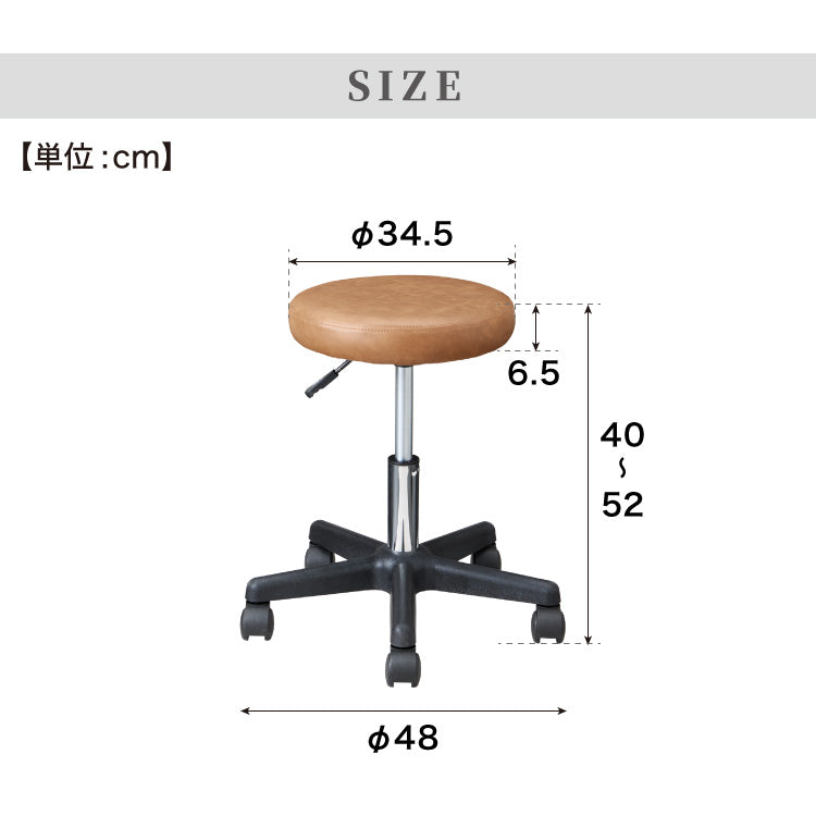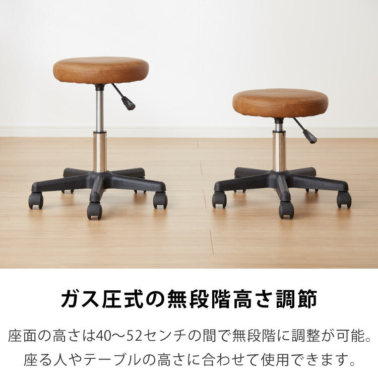 ワーキングチェア、ラウンドスツール、白、黒、茶色、回転、インテリア、デスクチェア、ガス圧昇降、ガス圧、昇降式、キッチン、事務、エステ、エステサロン、厚手クッション、サロンワーク、在宅、在宅ワーク、テレワーク、リモート、リモートワーク、キャスター付、コンパクトチェア、施術、診察
