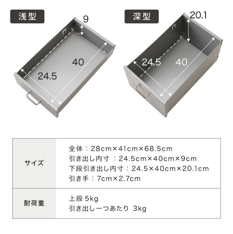 コンパクトな幅28cmで、省スペースでもしっかり収納。引き出しはA4サイズ対応で、文具や小物の整理にぴったり。