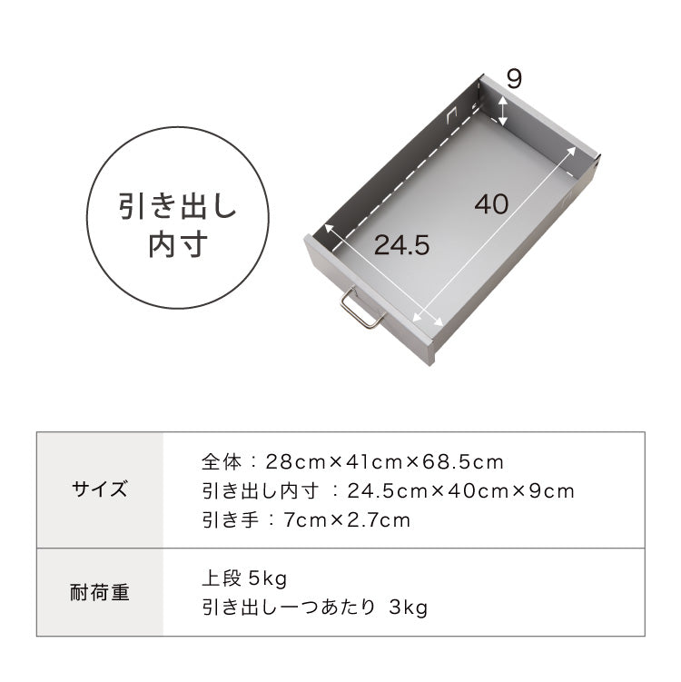 コンパクトな幅28cmで、省スペースでもしっかり収納。引き出しはA4サイズ対応で、文具や小物の整理にぴったり。