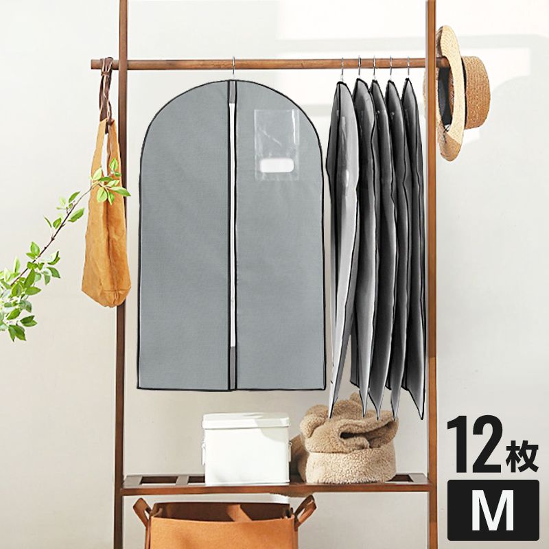 洋服カバー 12枚組 100cm 不織布 通気性 防塵 ほこり防止 日焼け防止 センターファスナー 透明窓 ポケット付き 収納 衣服収納 衣装カバー 衣服カバー 衣類カバー カバー 押し入れ クローゼット ワードローブ 引越 衣替え