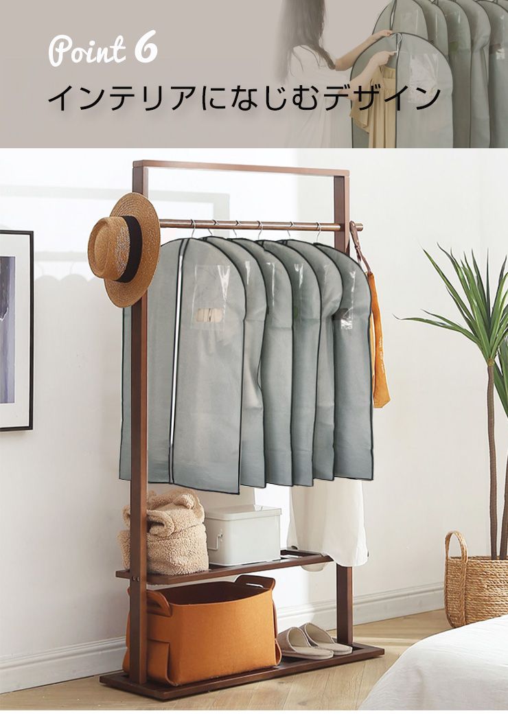 ・ハンガー穴や裾の構造にこだわり、なるべく衣類が外に晒されない事で埃から守ります