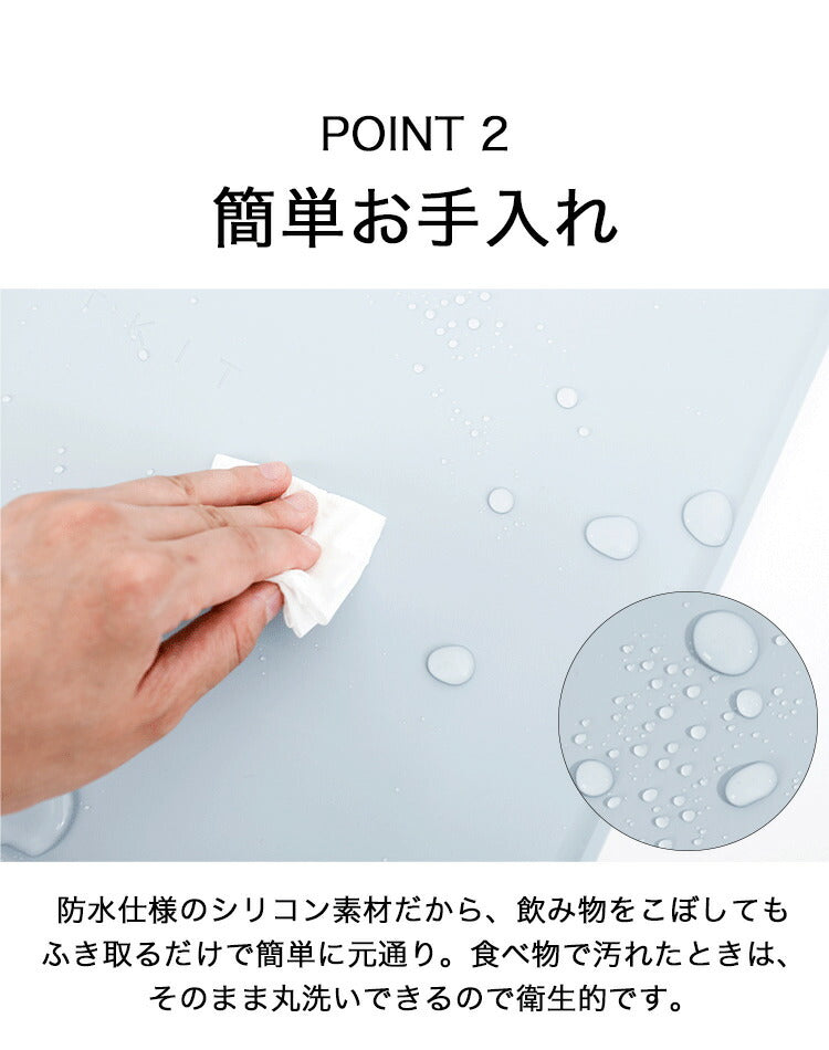 ・シリコン素材だから飲み物をこぼしてもふき取るだけで簡単に元通り。