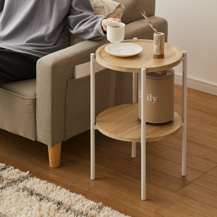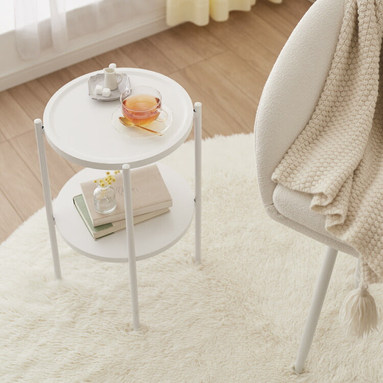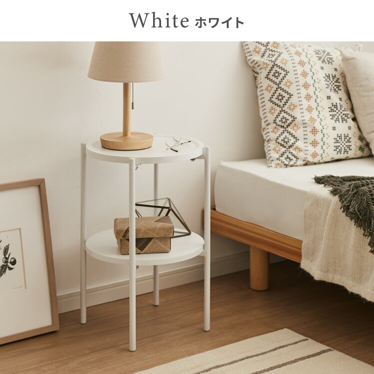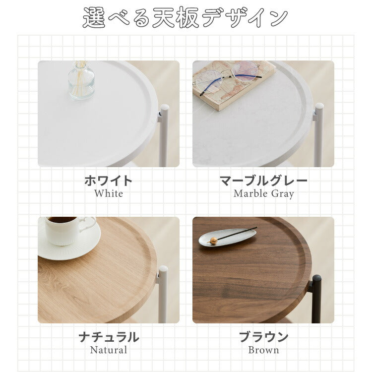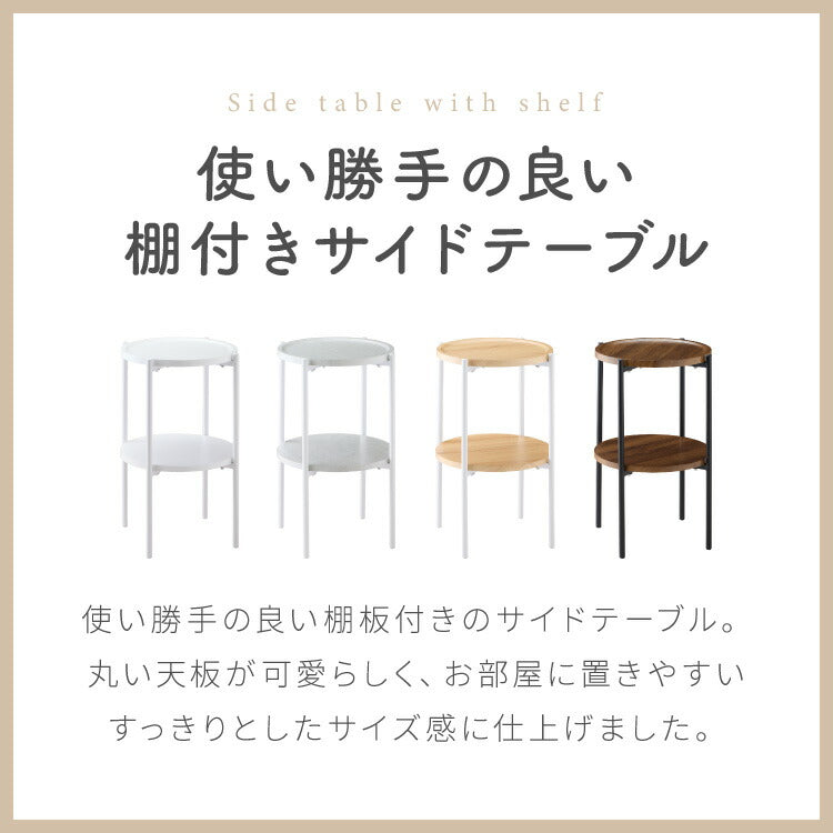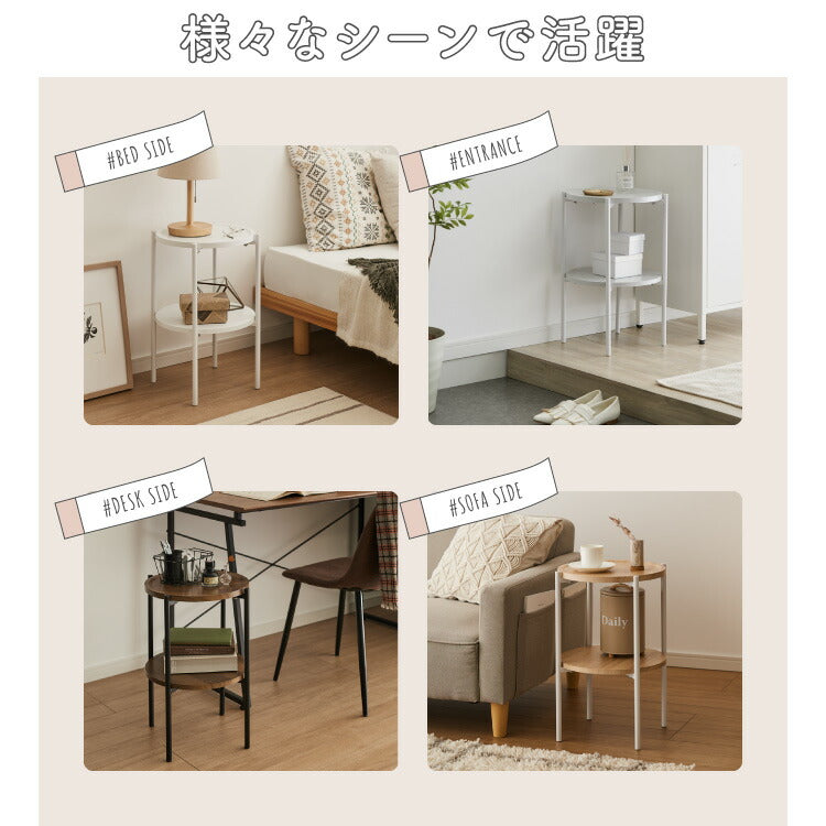 サイドテーブル、ナイトテーブル、ミニテーブル、ソファサイド、ベッドサイド、飾り棚、ラック、丸型テーブル、ラウンドテーブル、2段ラック、2段テーブル、幅37cm、高さ52cm、コンパクト、省スペース、大理石柄、大理石風、木目調、北欧、ナチュラル、ヴィンテージ、シンプル、モダン、ホワイト、ブラウン、マーブル、インテリア、リビング収納、玄関サイド、小物置き、花台、観葉植物スタンド