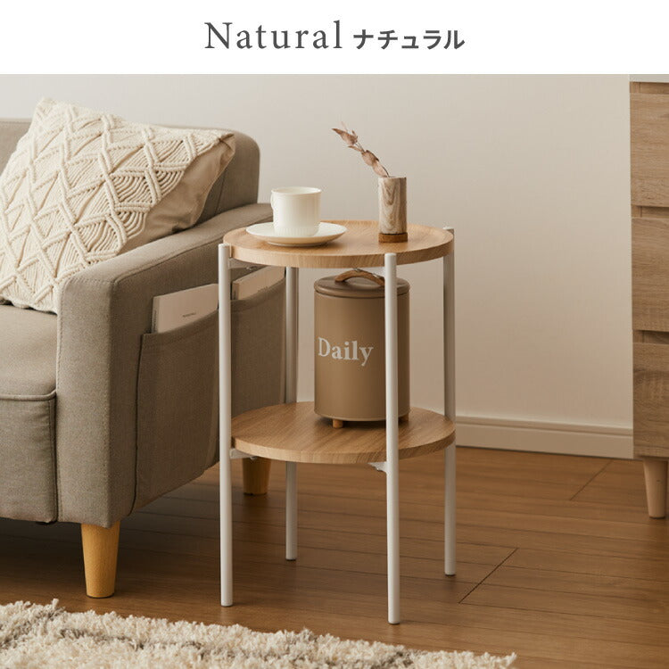 サイドテーブル おしゃれ 2段 幅37cm 高さ52cm コンパクト ホワイト 大理石柄 ナチュラル ブラウン 北欧 ヴィンテージ シンプル 飾り棚 ラック テーブル ミニテーブル 丸 ラウンド ナイトテーブル