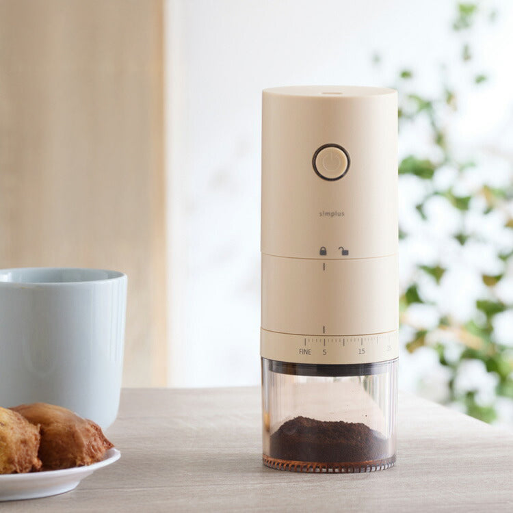simplus 電動コーヒーミル コニカル式 コードレス セラミック刃 粒度調整 珈琲 持ち運び コーヒーグラインダー プロ仕様 豆挽き シンプラス SP-COM01