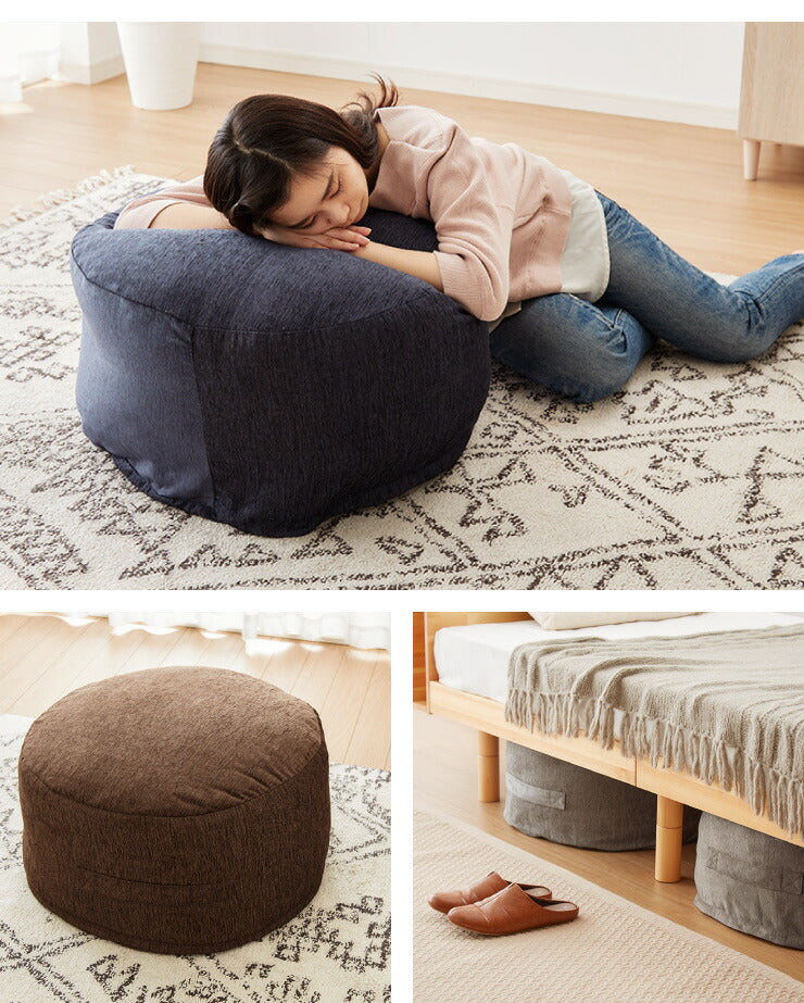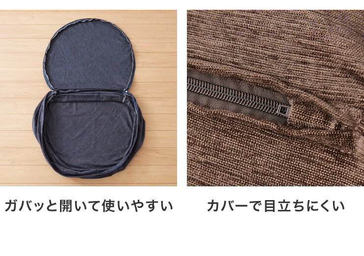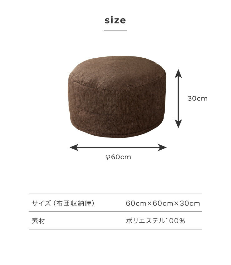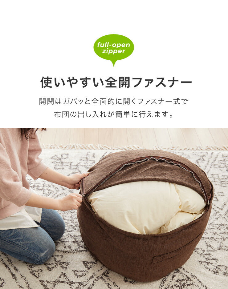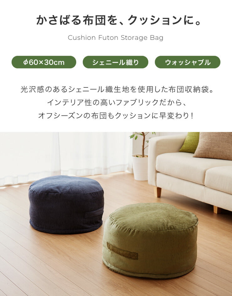 布団収納 クッション 2点セット 幅60cm 丸型 シェニール織 一人掛け ソファ ソファー カバー 座布団 アースカラー おしゃれ かわいい 円形 ラウンド型 布団収納ケース 布団収納袋 収納ケース 布団ケース ふとん収納 布団