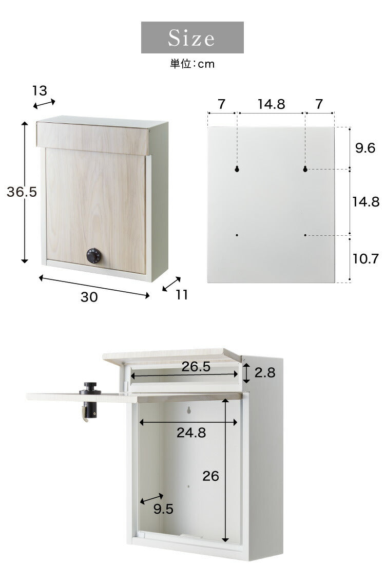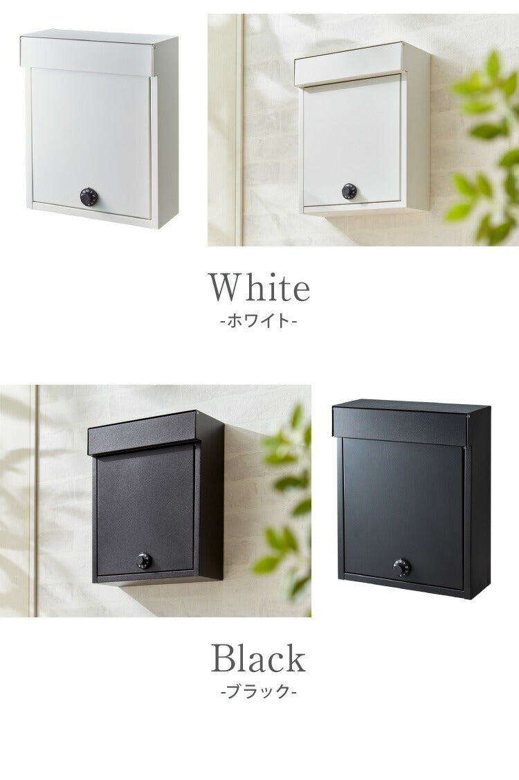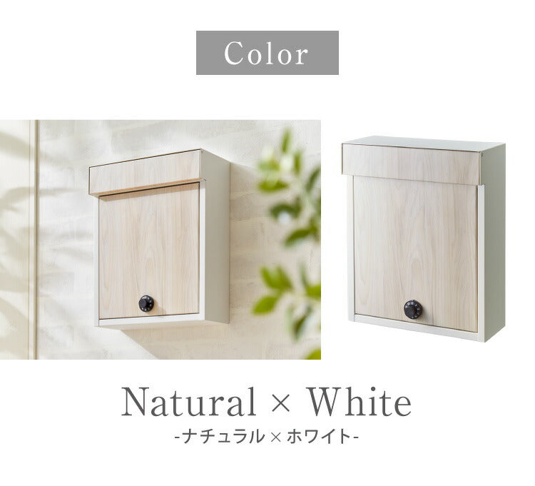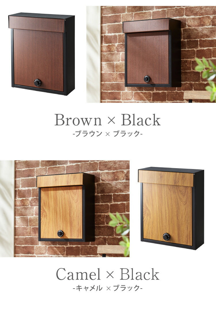 郵便ポスト、ダイヤル式、壁掛け、壁付け、スチール製、角2対応、A4対応、大容量、省スペース、スチール製、軽量、サビにくい、木目調、おしゃれ、北欧、鍵付き、セキュリティ、壁掛けポスト、メールボックス、POST、ナチュラル×ホワイト、ブラウン×ブラック、キャメル×ブラック、ブラック、ホワイト