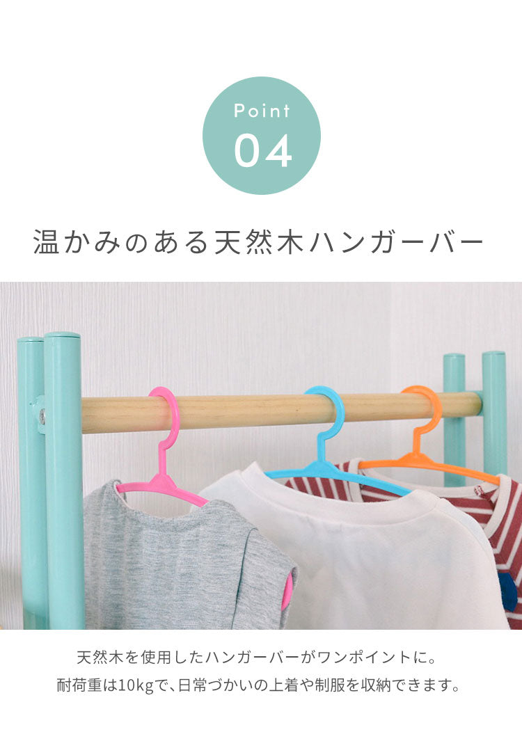 ハンガーの高さもお子様が自分で届くような高さなので、自分でお片付けを行うための習慣づけにもうってつけです。