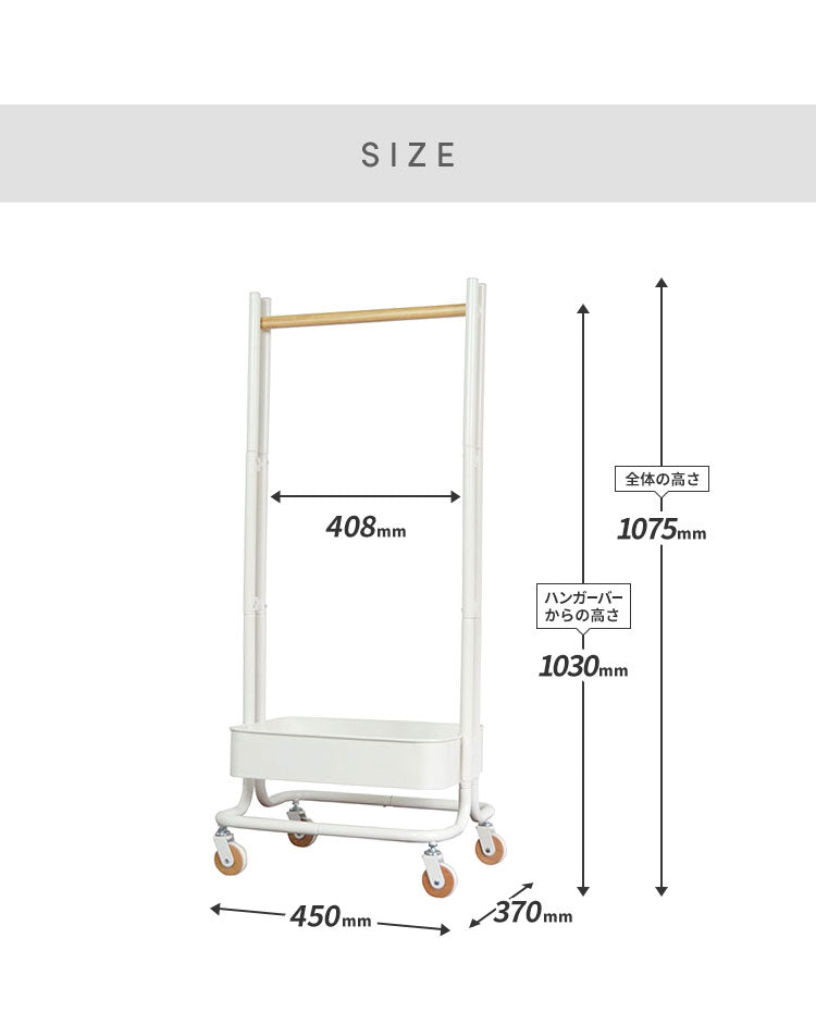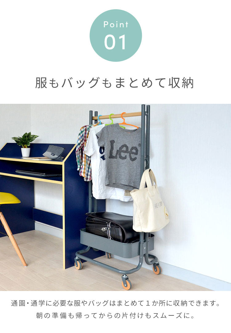 ROSSINI ハンガーラック キッズハンガー バスケット 収納 服 トローリーワゴン ランドセル コートハンガー 服掛け スリム おしゃれ ワゴン(代引不可)