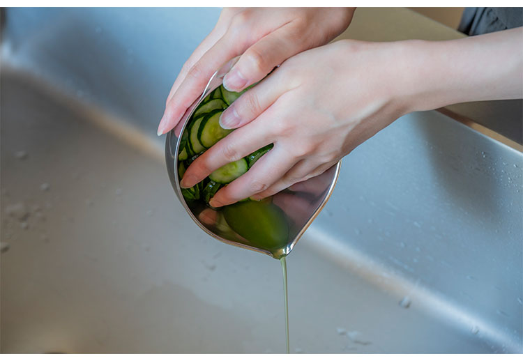 深さがあるため混ぜ合わせやすく、漬け込みにも適しています。
