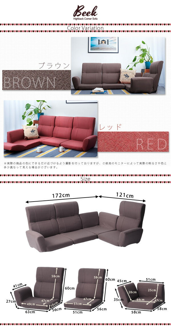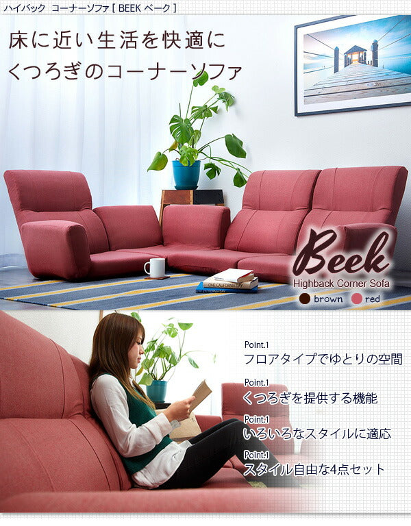 ソファ ソファー ローソファ ローソファー 3人掛け 4人掛け リクライニング フロアコーナーソファ コーナーソファ コーナーソファー フロアソファ ロースタイル【Beek】ベーク(代引不可)