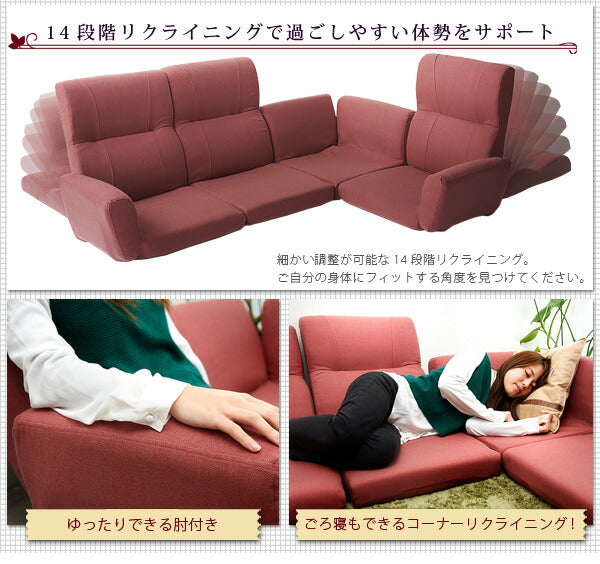 ※背もたれ14段階リクライニング、コーナー片面のみ14段階リクライニング