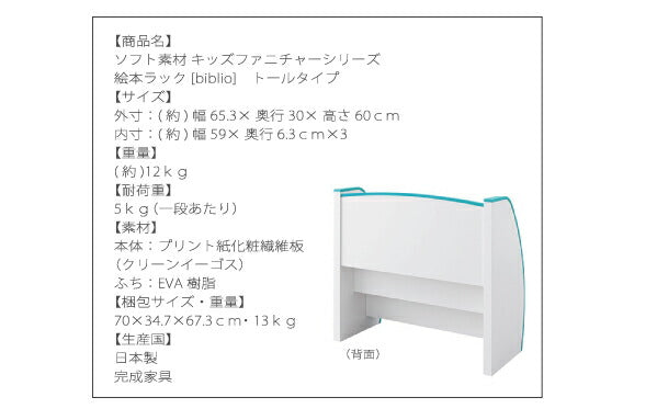子供用収納 ソフト素材キッズファニチャーシリーズ 絵本ラック biblio ビブリオ トールタイプ(代引き不可)