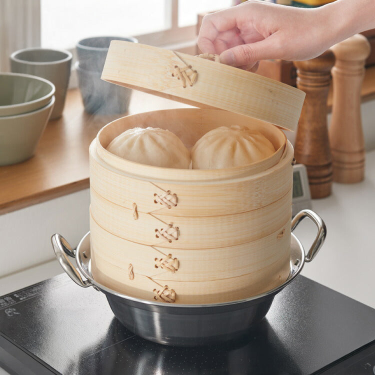 日本製 燕三条 ステンレス鍋 本竹せいろ2段 セット 18cm 簡単蒸し料理 ステンレス鍋 蒸し器 蒸し鍋 2段 竹 せいろ セイロ 蒸し セット 肉まん シュウマイ 蒸し野菜 中華 蒸篭