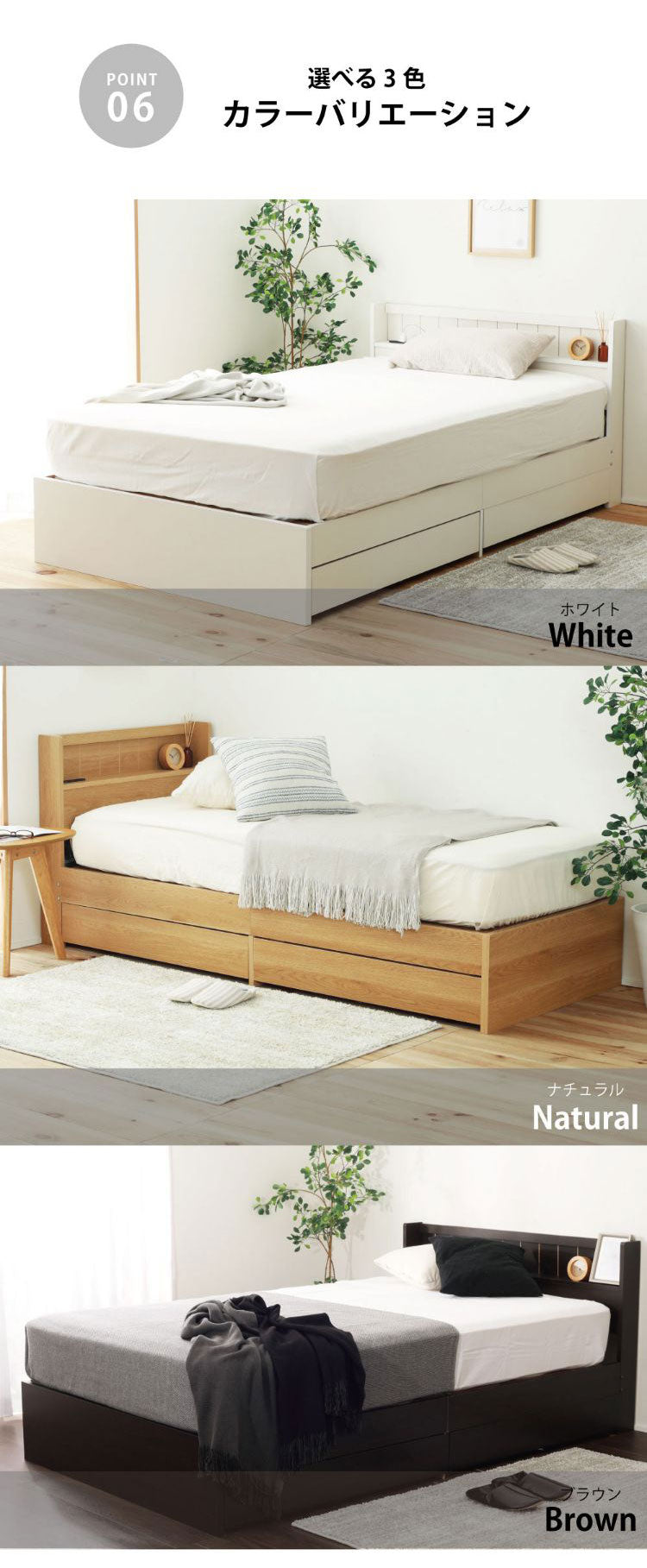 豊富なサイズ展開から選べる収納ベッド。棚には便利なコンセント付き