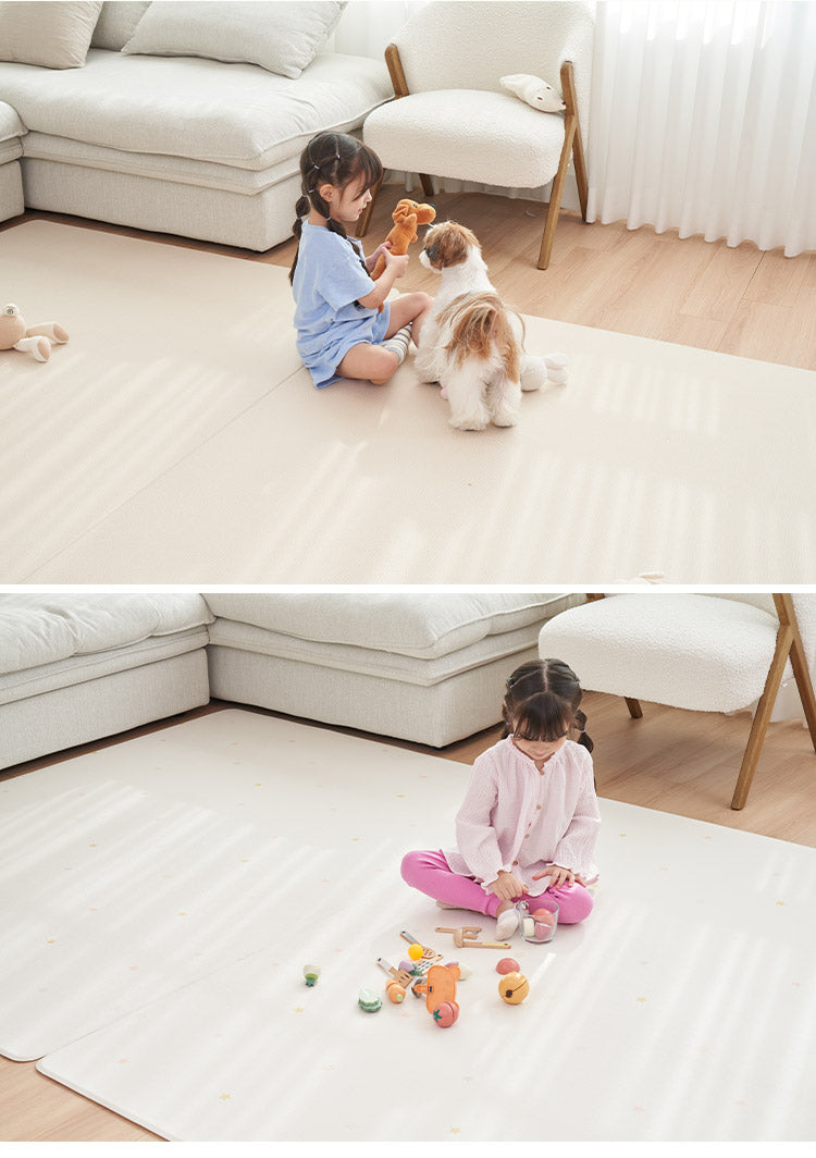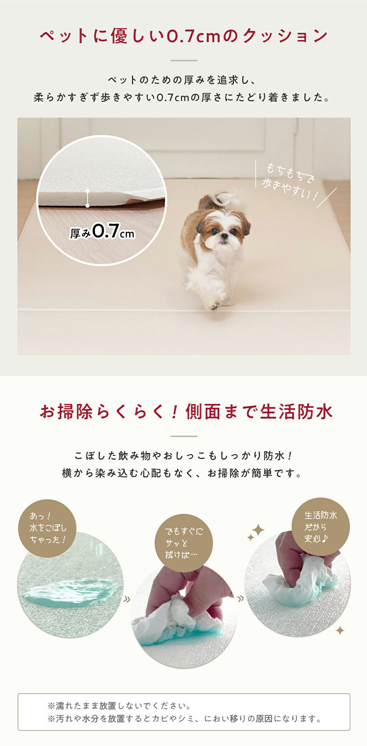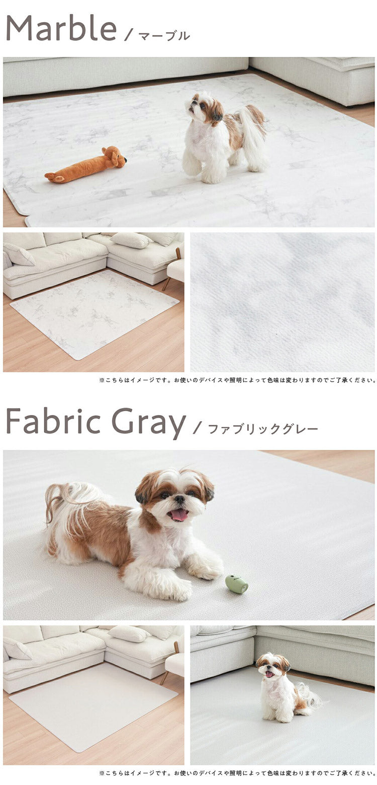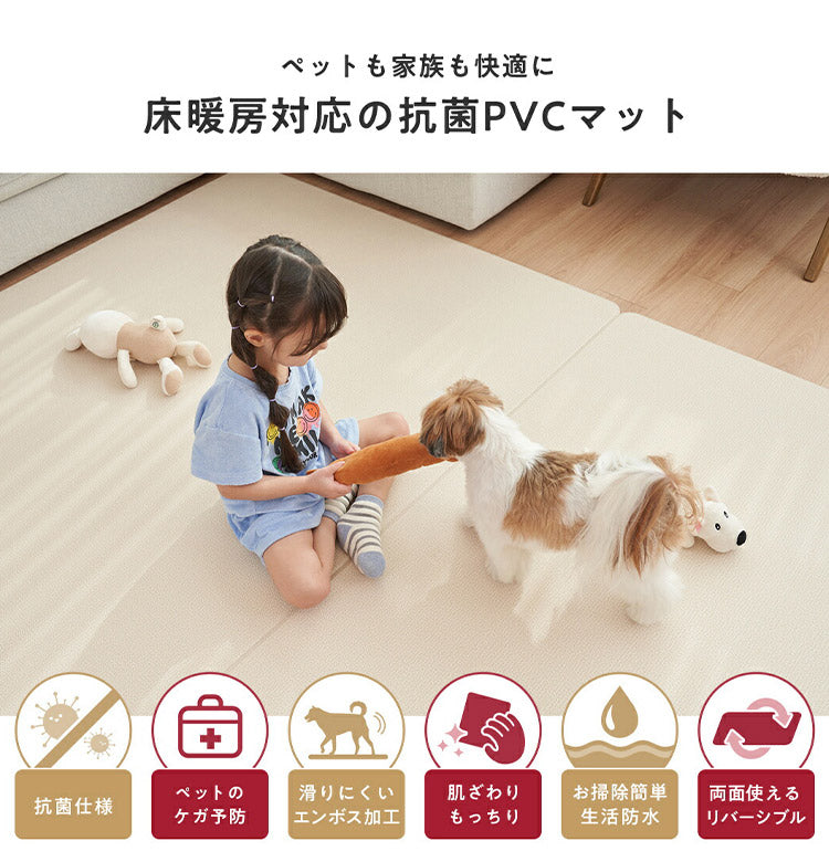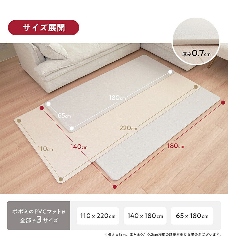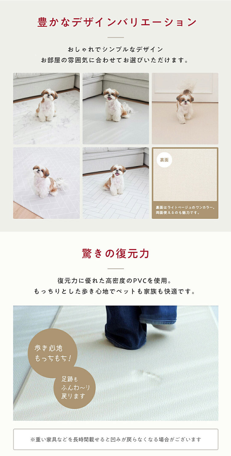 ・PVCの性質上、開封時には梱包の際についたシワが残っていることがありますが、何日か広げて敷いておくと自然と目立たなくなります