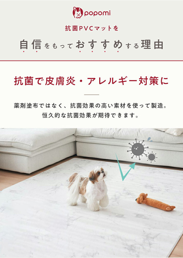 popomi ポポミ 抗菌PVCマット 110×220×0.7cm 抗菌 PVC ペットマット クッションマット 犬 床暖房 撥水 防水 滑り止め ペット マット 大理石 防炎 ドッグマット pvcマット ペット用 防滑 防音 犬 猫(代引不可)