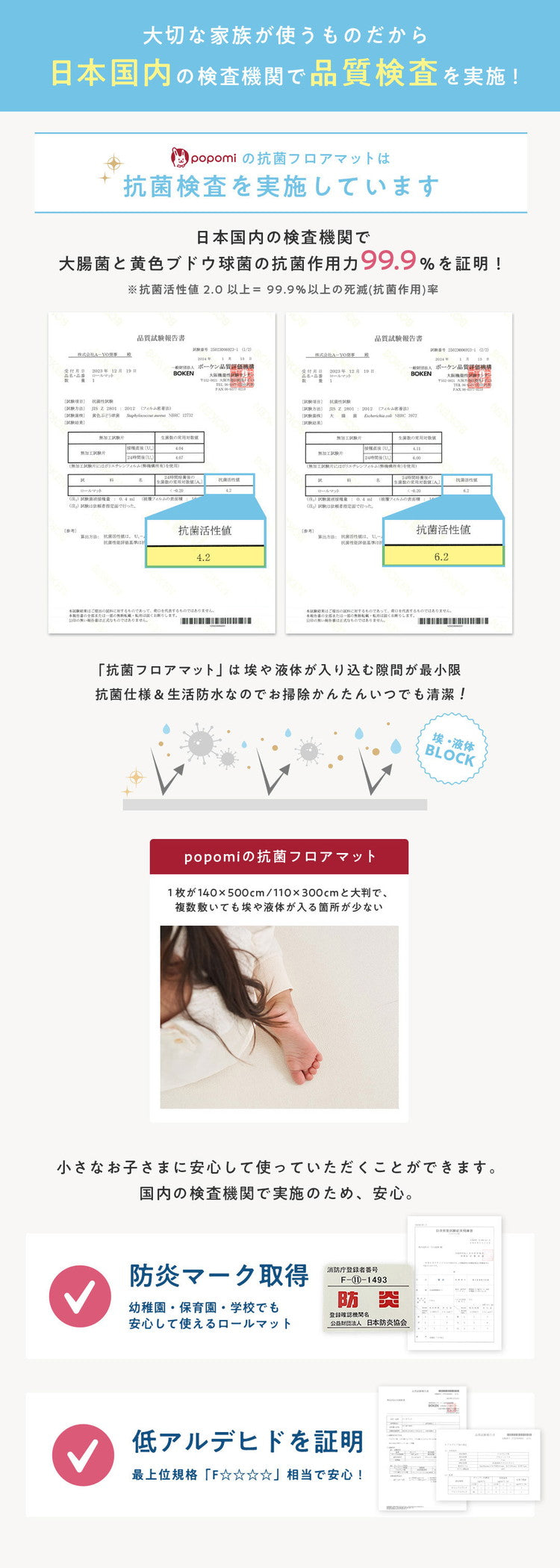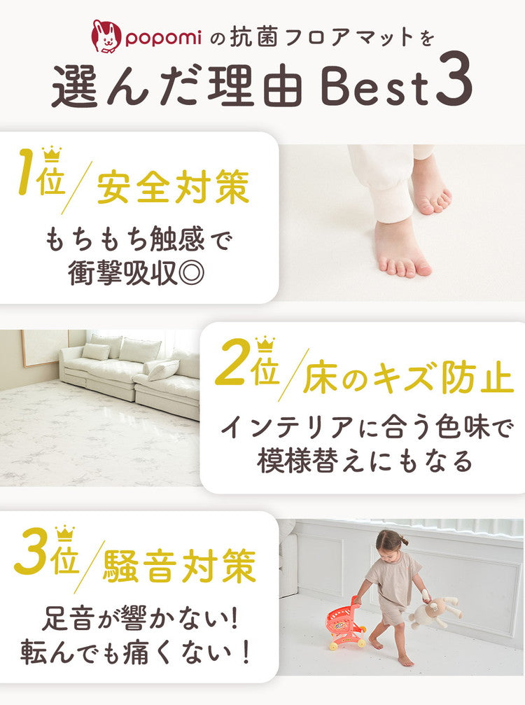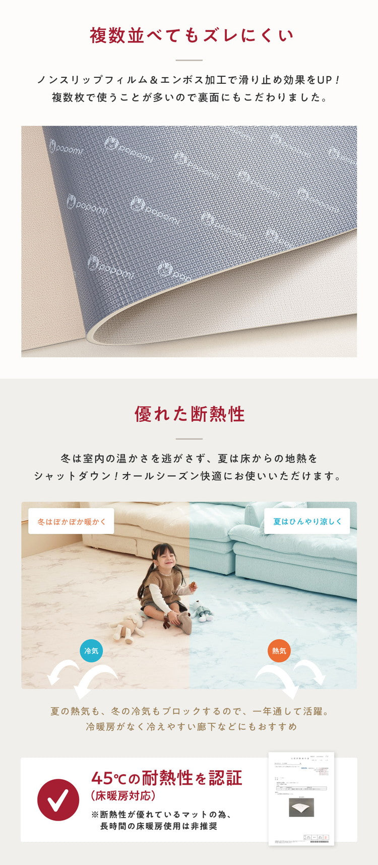 popomi ポポミ プレイマット ロールマット クッションマット フロアマット ジョイントマット ベビー 赤ちゃん PVC シームレス フリーカット 厚手 マット 幅140cm 奥行500cm 厚さ1.5cm(代引不可)