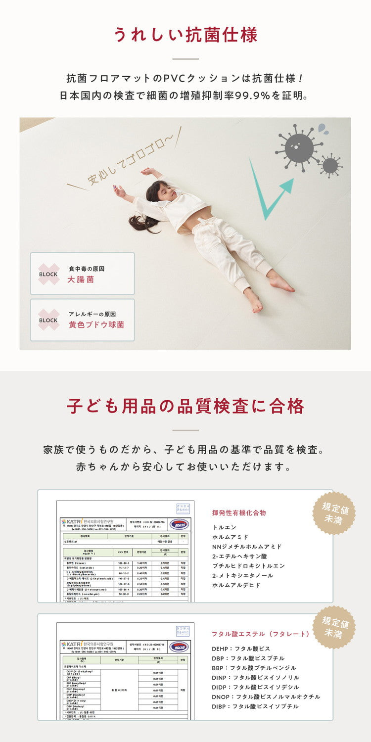・床暖房を使用する際、マットの表面まで床暖房の熱は伝わりません。また長時間の使用は避け、使用後は陰干しするなど手入れを行って下さい。また、熱によるマットの歪みや縮み、素材が丸まる恐れがございますが返品・交換は対象外となります。