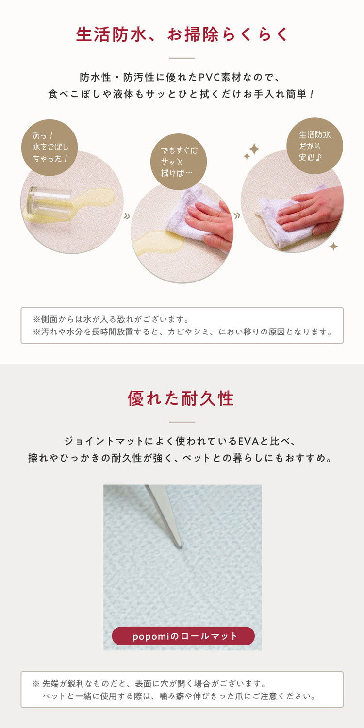 ・ペットの爪など先の尖った物により、プレイマットの表面に傷や穴ができる場合がございます。