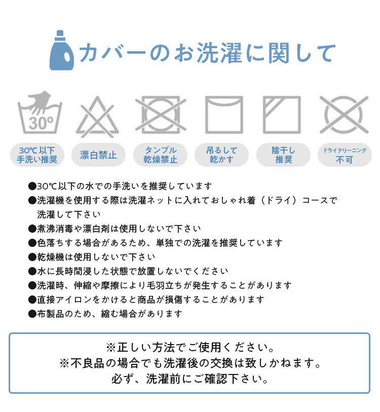 ※不良品の場合でも洗濯後の交換は致しかねます。