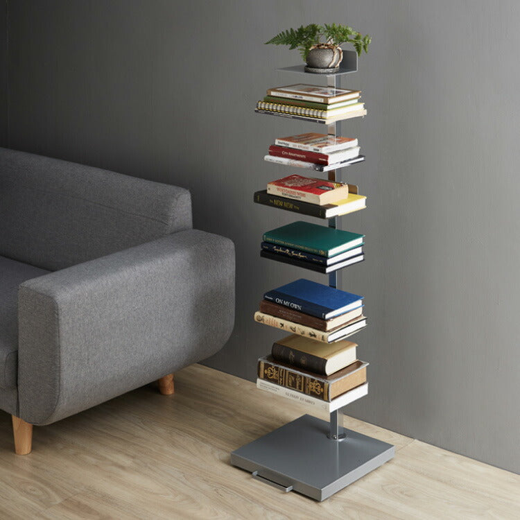 日本製 ブックタワー ハイタイプ 8段 積ん読ラック 高さ調節 頑丈スチール 隠しキャスター 本棚 シェルフ マガジンラック コミック 文庫本 積読 棚 ディスプレイ おしゃれ(代引不可)