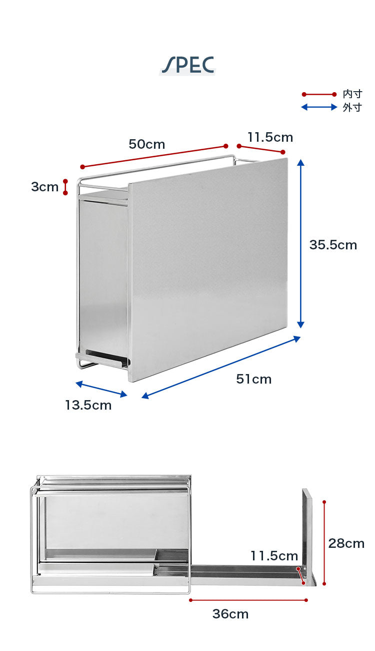 ■外寸:幅13.5cm×奥行51cm×高さ35.5cm (取っ手の奥行1cm含む)