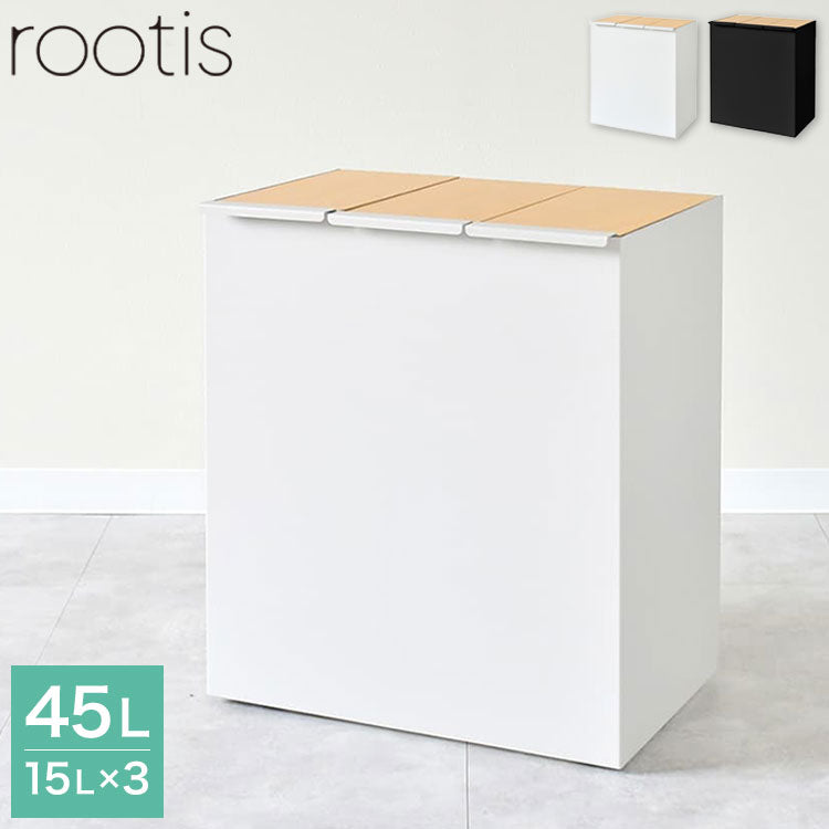 rootis 日本製 隠せるデザインゴミ箱 ダストボックス 15L×3分別 幅45cm 隠しキャスター 天然木 蓋付き スリム ダストボックス ゴミ箱 45リットル 45L おしゃれ(代引不可)