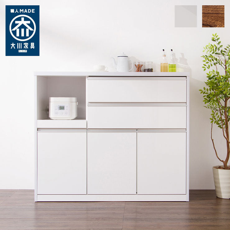 キッチンカウンター 幅120cm 【国産 大川家具 開梱設置無料 完成品】 レンジ台 レンジラック 食器棚 キッチンワゴン (代引不可)
