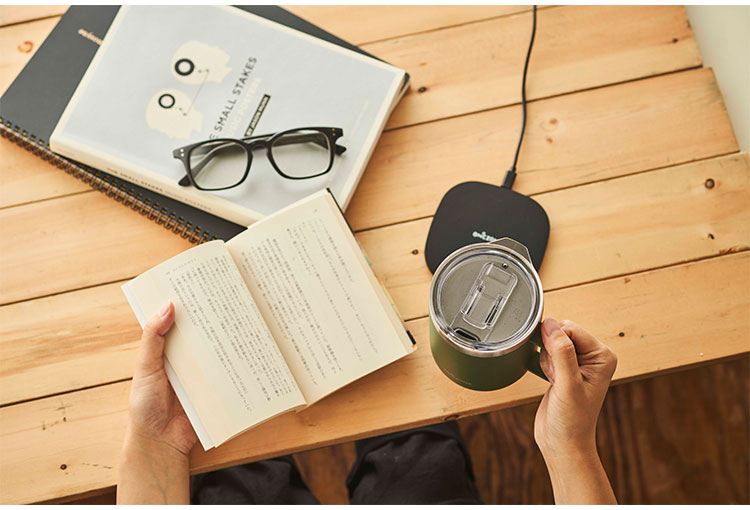 Qi、Qi充電、スマホ充電、保温、ホットドリンク、飲み物、マグ、マグコップ