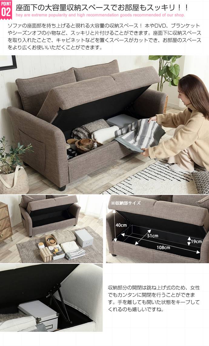 ソファ ソファー 2人掛け 座面収納 大容量 ポケット付き ソファーベッド 2P 二人掛け 肘付き ローソファー コンパクト おしゃれ 一人暮らし 韓国インテリア 北欧(代引不可)