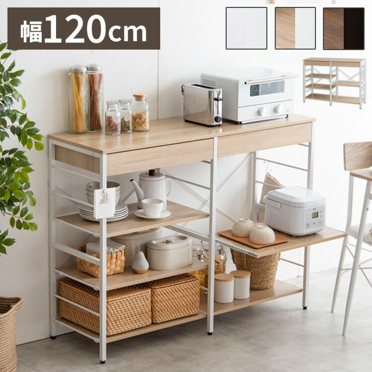 キッチンカウンター レンジラック 幅120 引き出し 可動棚 大容量 レンジ台 レンジラック キッチン収納 キッチンラック 大型レンジ対応 食器棚 レンジボード おしゃれ(代引不可)