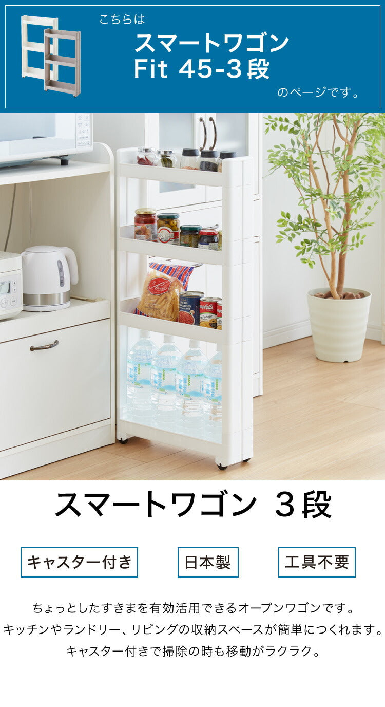すきま収納、15cm、スマートワゴンFit、45-3段、F-2544、フィット、隙間収納、キッチン、スリム収納、スリム、スリムラック、すき間、隙間、すきま、サニタリー、ランドリー、キッチン収納、ホワイト