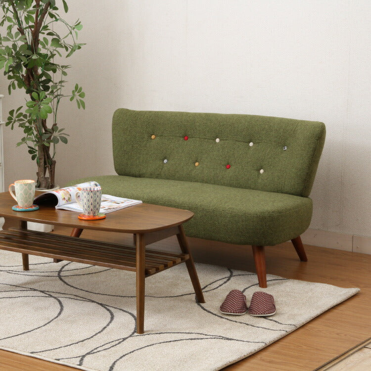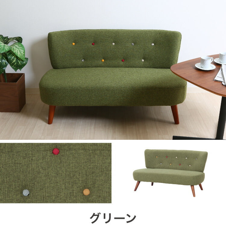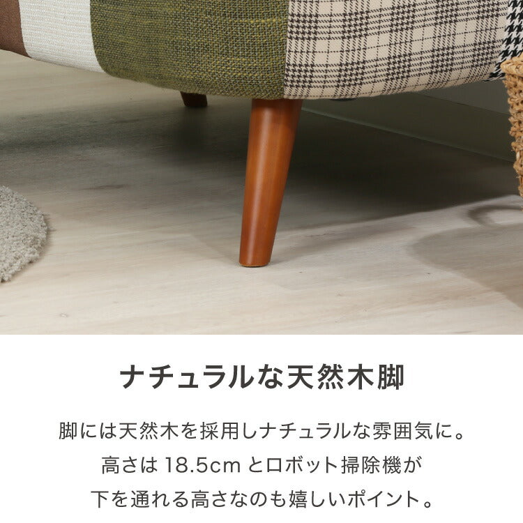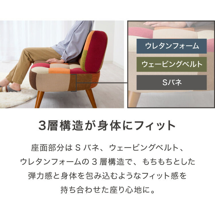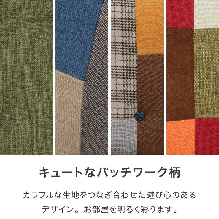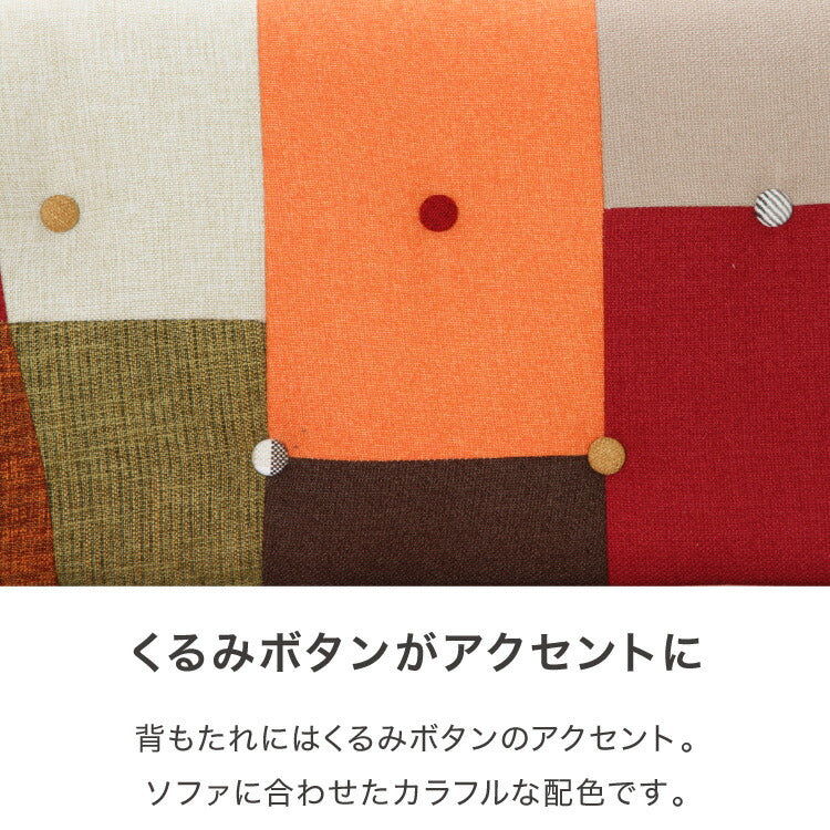 パッチワークの張地に合わせたカラフルボタンがキュートなコンパクトソファ。
