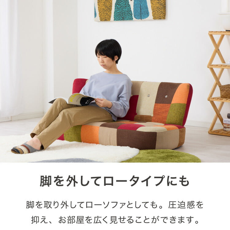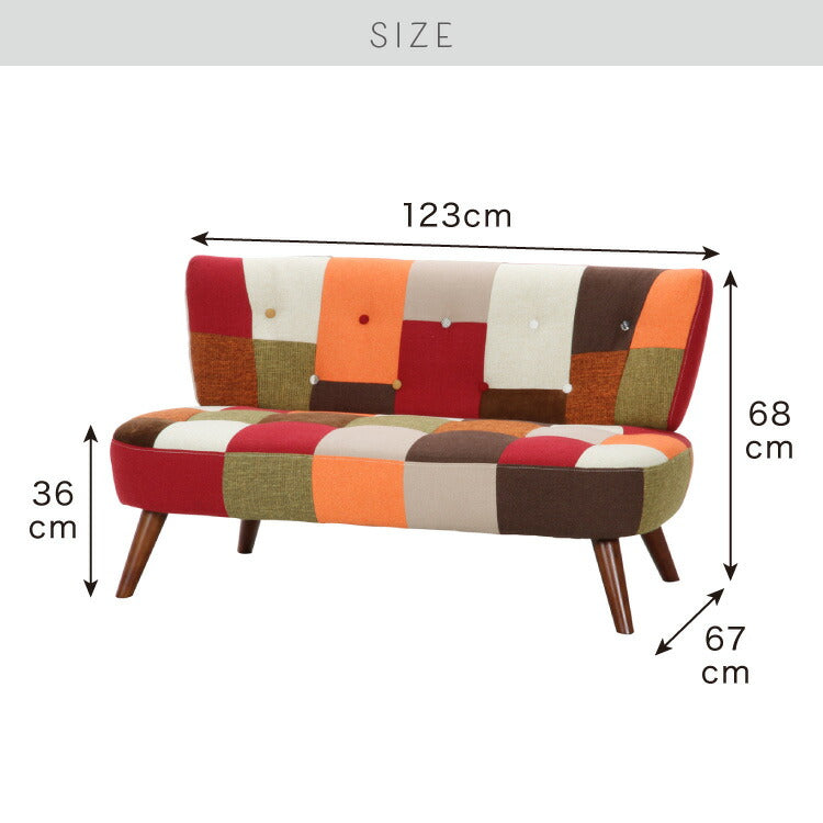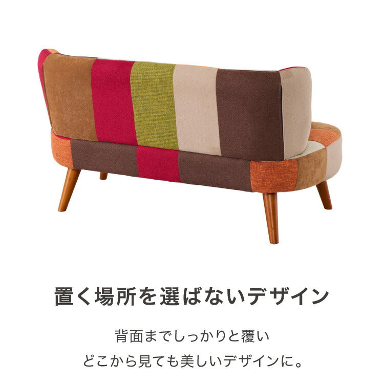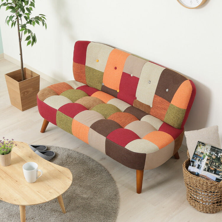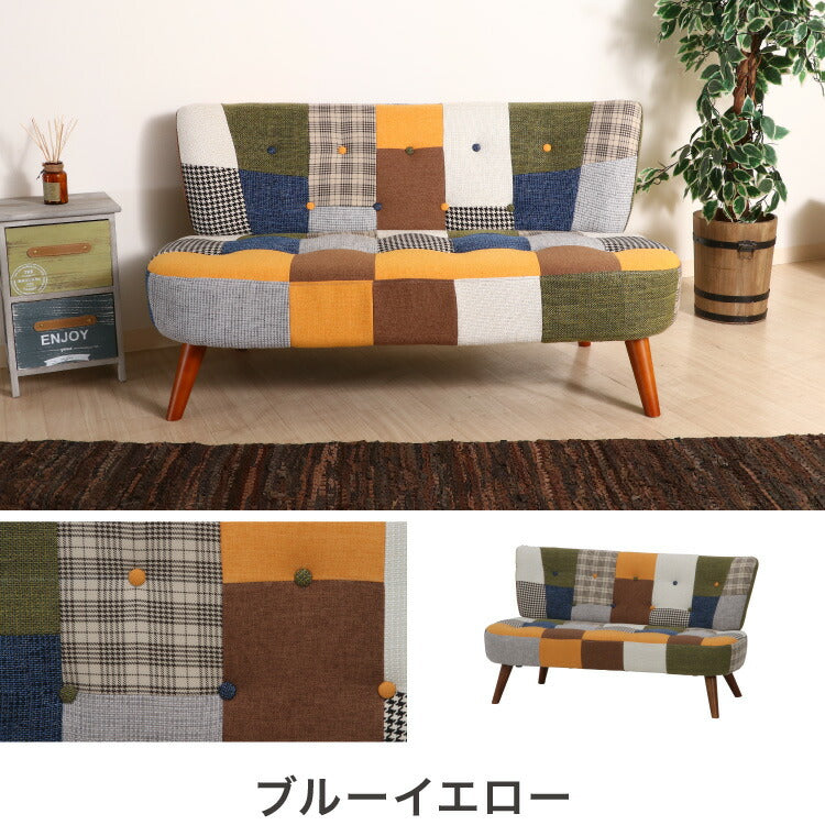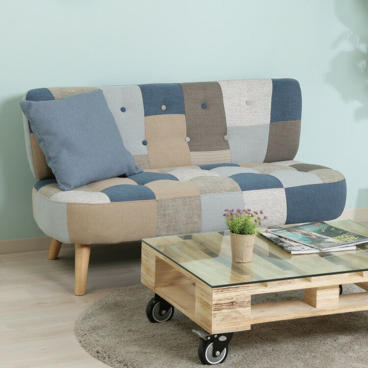 ソファ 幅120cm パッチワーク カラフル おしゃれ 2人掛け かわいい 北欧 リビングソファ ローソファ ファブリック 肘掛けなし 弾力 daisy デイジー 新生活 ブルー グリーン(代引不可)