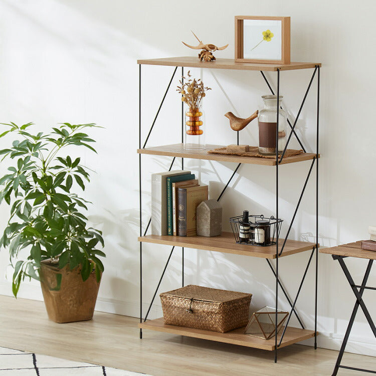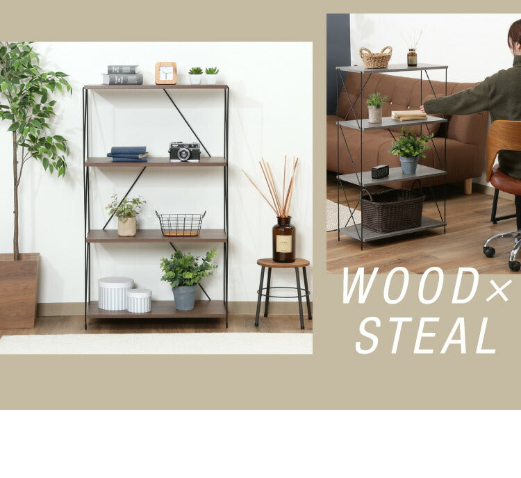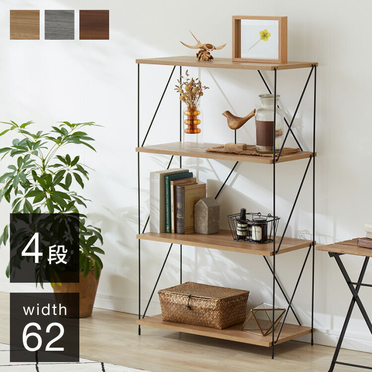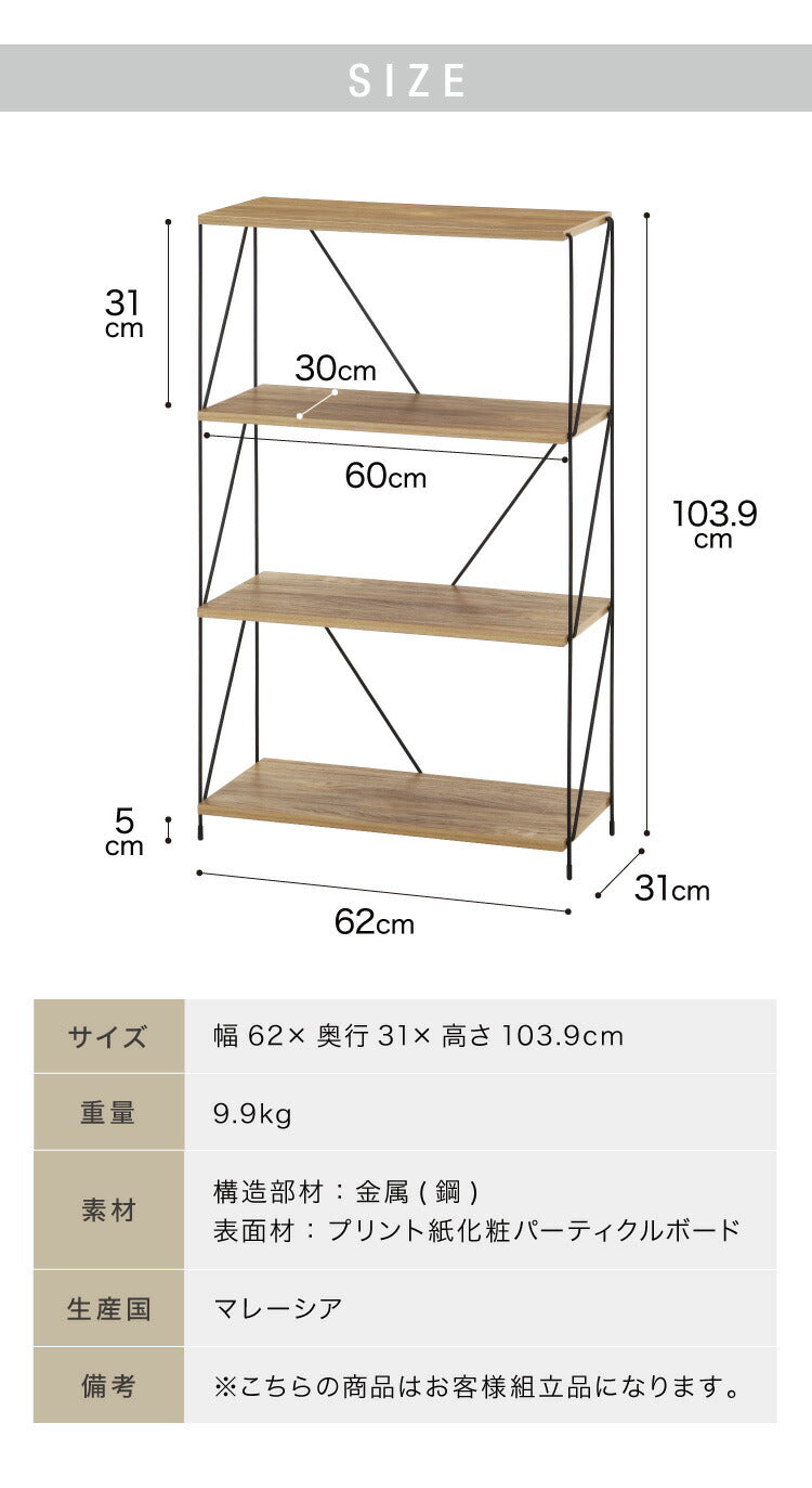 ワイヤーラック 4段 幅62cm 木目調 スチール 組み立て簡単 工具不要 おしゃれ 北欧 収納 スチールラック ワイヤーラック スチールシェルフ 子供部屋 洗面所 ディスプレイラック 隙間収納 すきま収納(代引不可)
