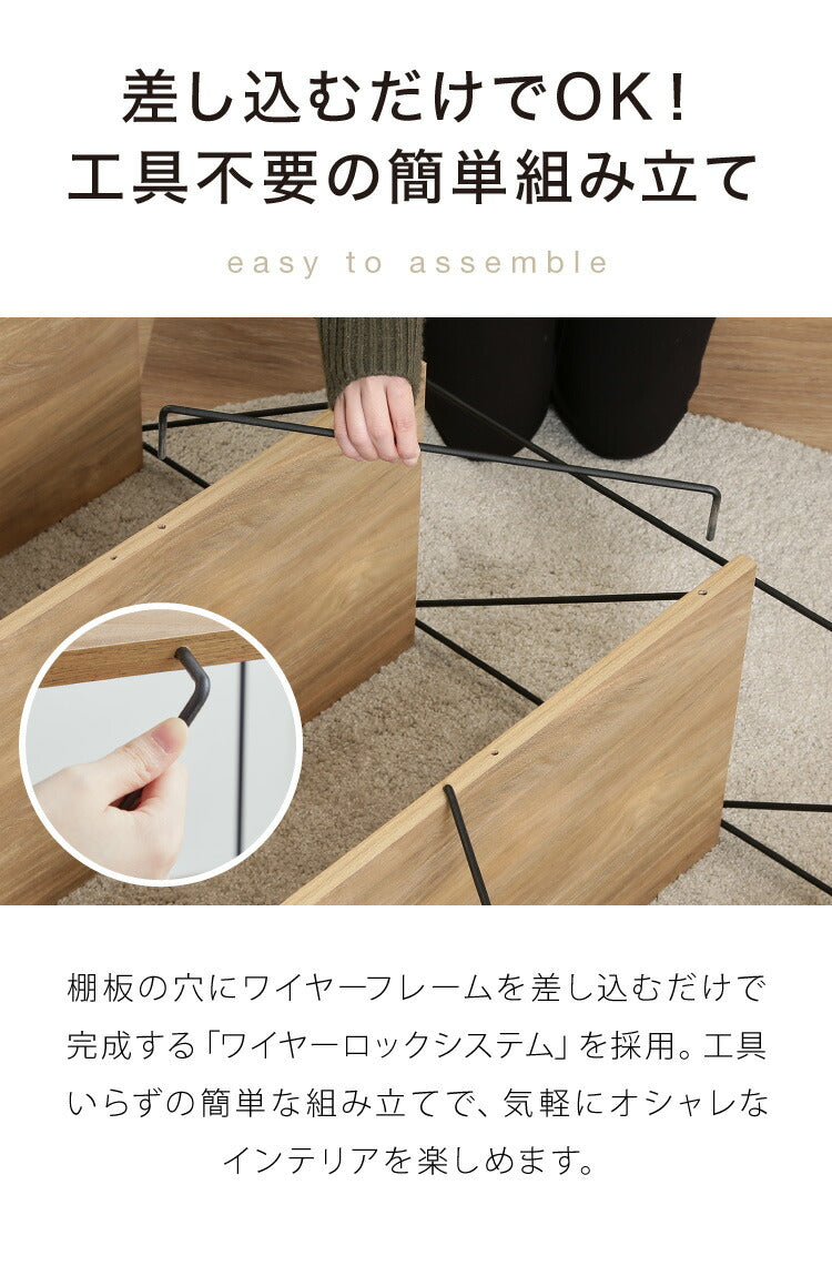 棚板の穴にワイヤーフレームを差し込むだけで完成する「ワイヤーロックシステム」を採用したシリーズで、手軽におしゃれなインテリアを楽しめます。