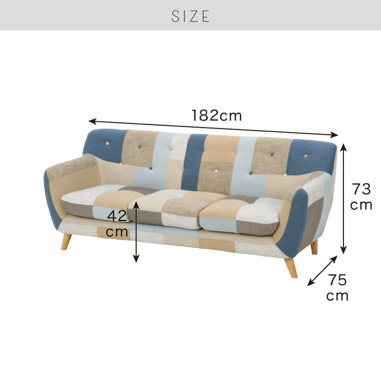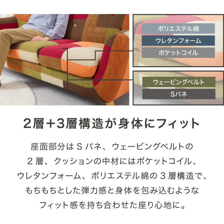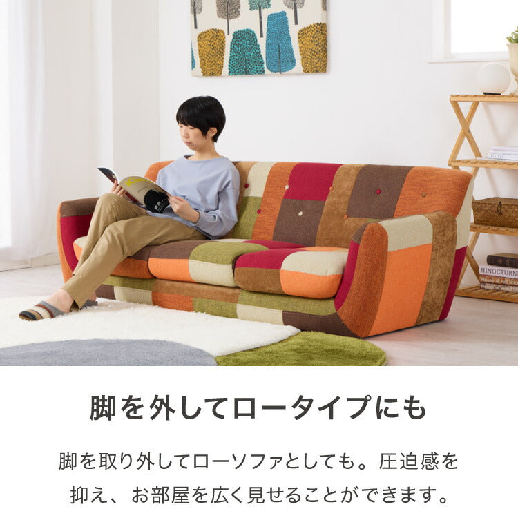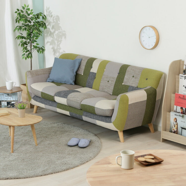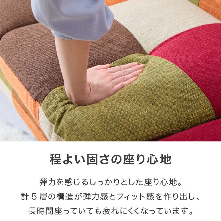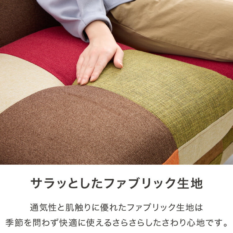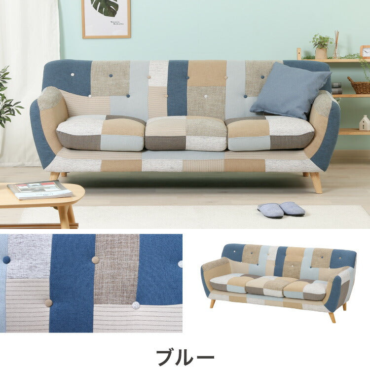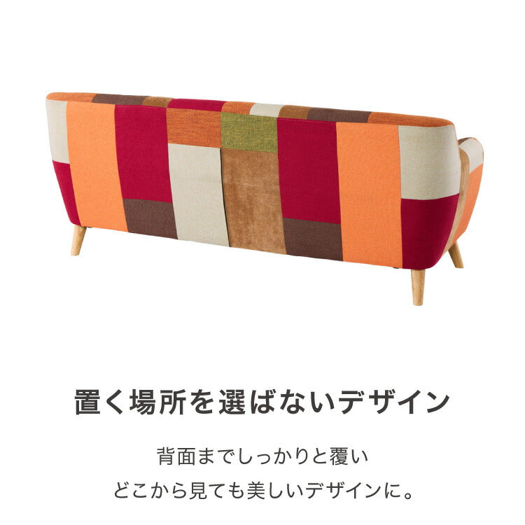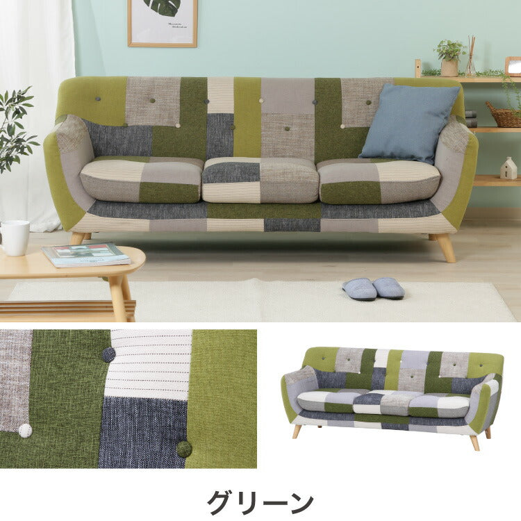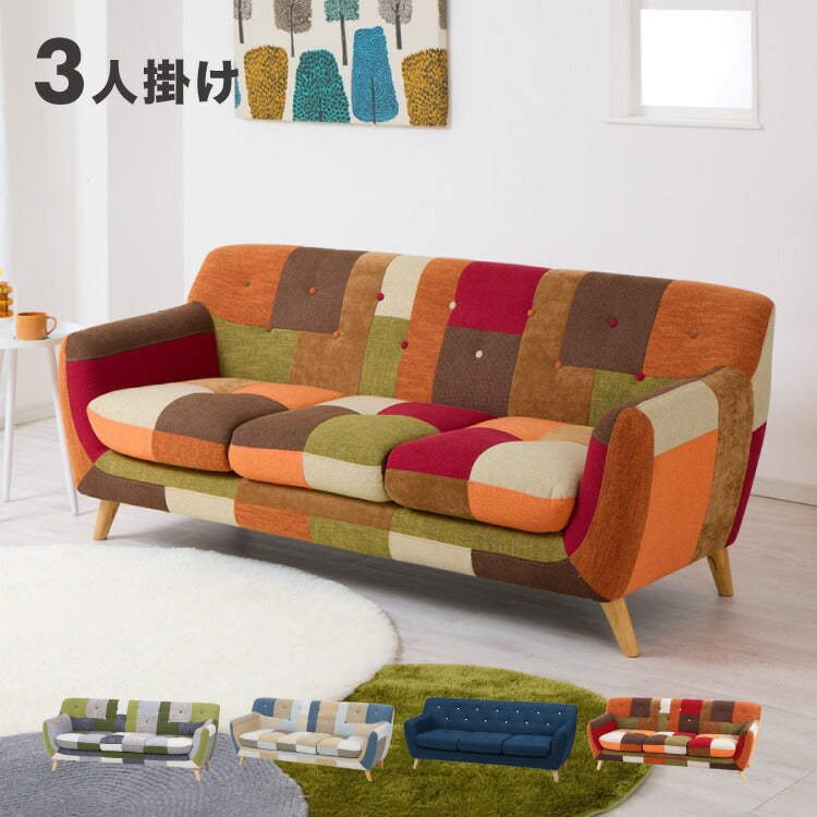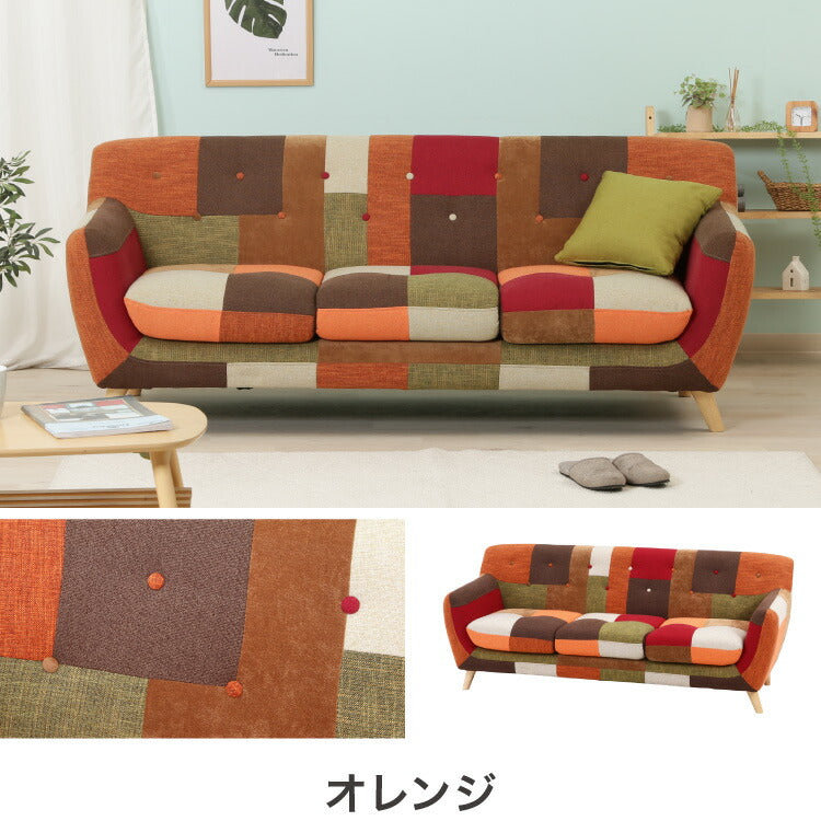 ソファ 幅180cm パッチワーク カラフル おしゃれ 3人掛け かわいい 北欧 リビングソファ ローソファ ファブリック 肘掛けあり 弾力 新生活 グリーン ブルー オレンジ ネイビー(代引不可)