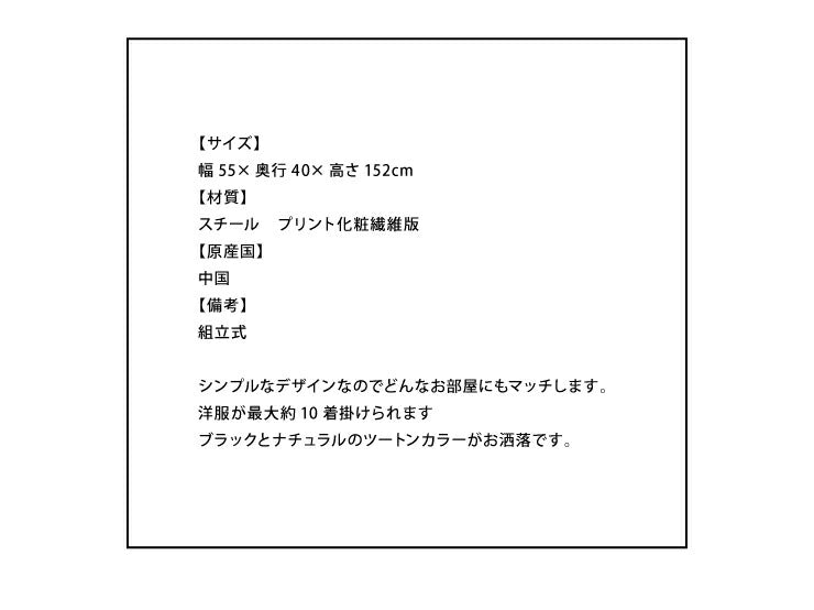 ハンガーラック おしゃれ 幅55cm 奥行40cm 高さ152cm Lタイプ 組立式 ブラック ナチュラル シンプル 北欧 コートハンガー 衣類収納 洋服掛け 玄関 コンパクト スリム HS-L150