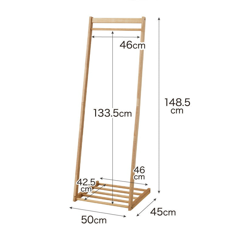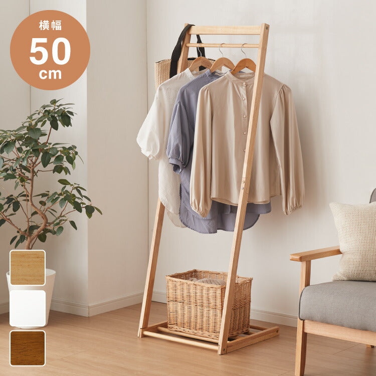 天然木 ハンガーラック 幅50cm 棚付き L型ハンガーラック 省スペース コンパクト スリム ナチュラル ハンガーラック 木製 ポールハンガー コートハンガー 洋服掛け 衣類収納 木製