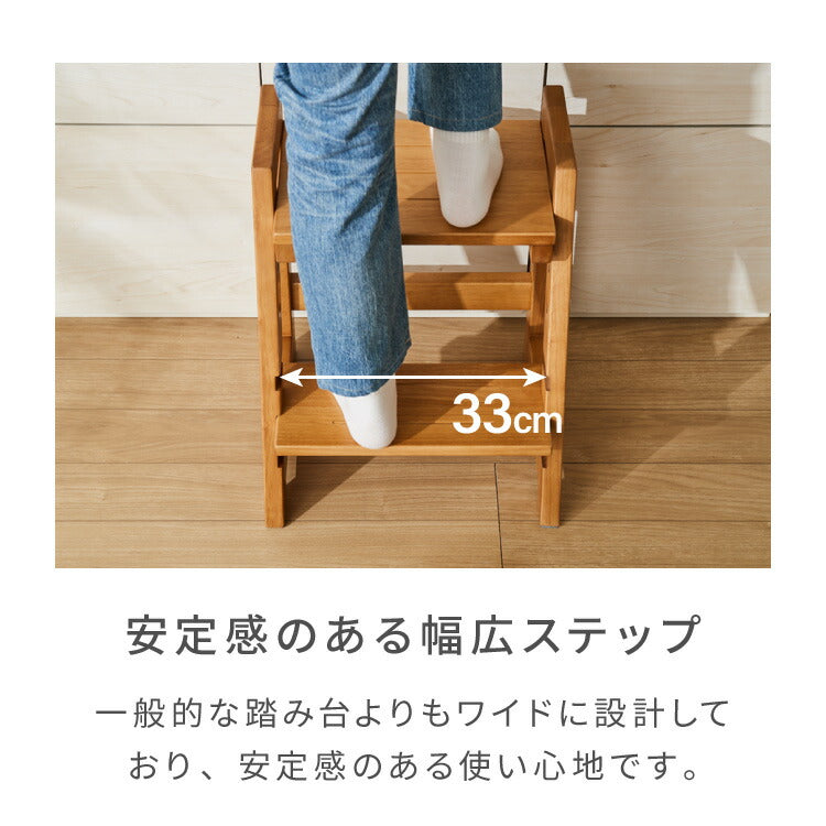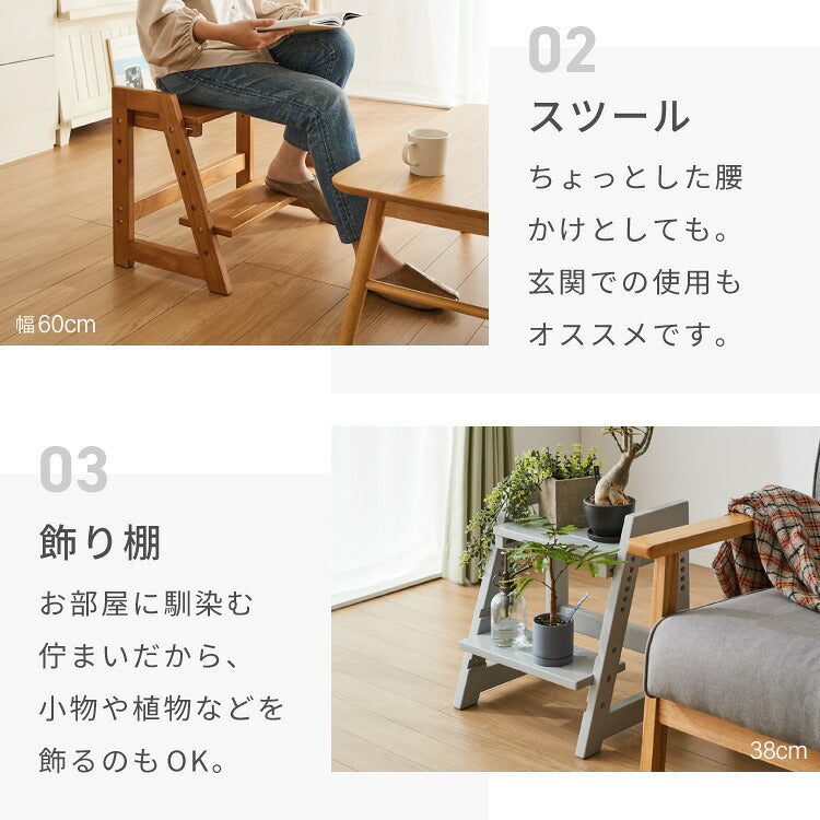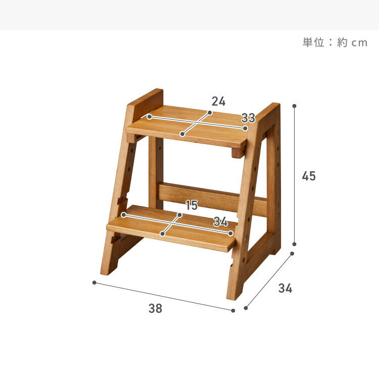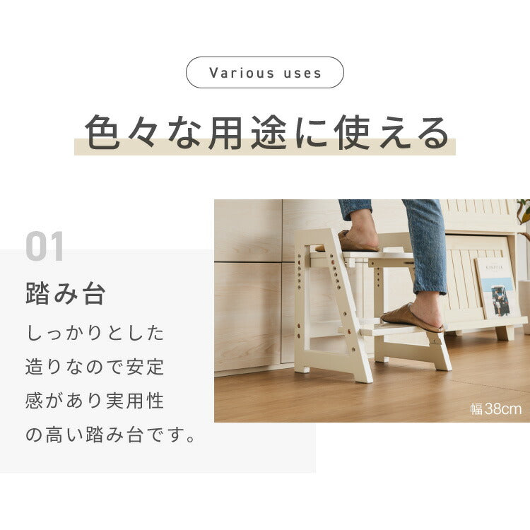 天然木 高さ調整踏み台 2段 幅38cm ステップ&スツール 6段階 ステップ台 ステップ スツール ふみ台 子供 キッズステップ 台 キッズ 子ども 木製 北欧 玄関 キッチン 洗面所 手洗い 子供用踏み台