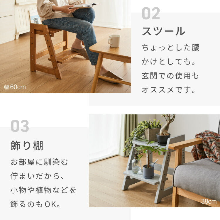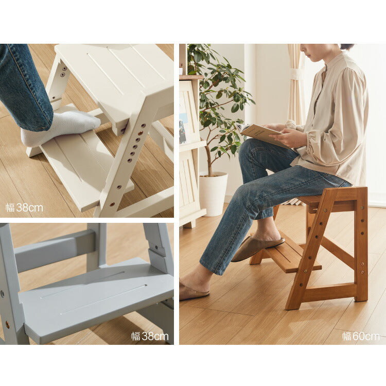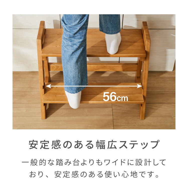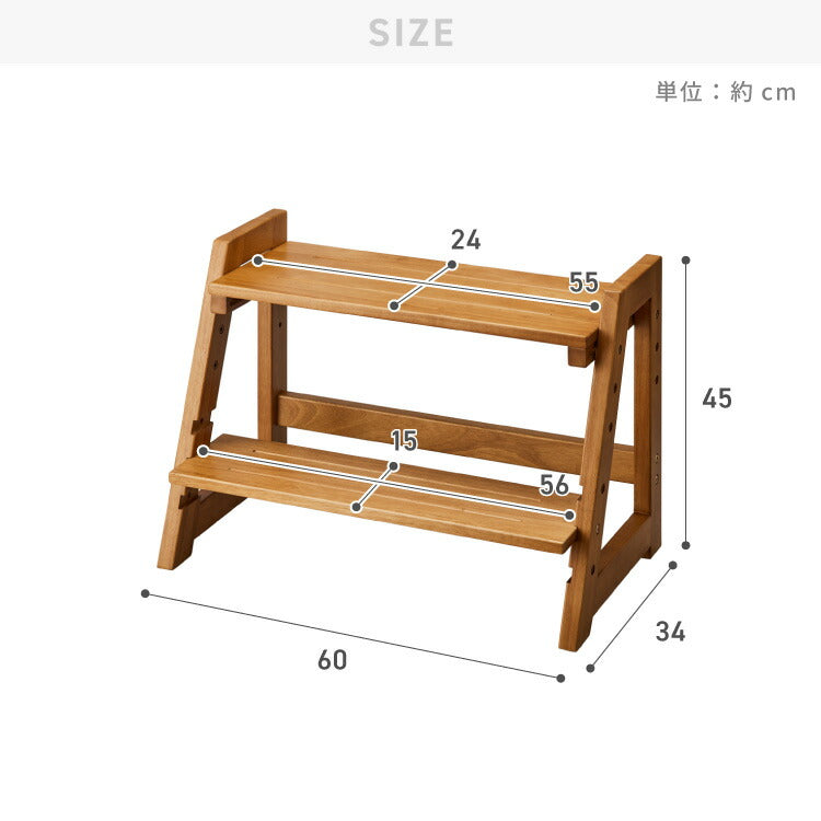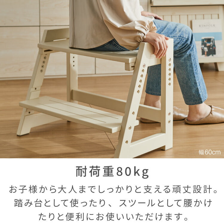 天然木 高さ調整踏み台 2段 幅60cm ステップ&スツール 6段階 ステップ台 ステップ スツール ふみ台 子供 キッズステップ 台 キッズ 子ども 木製 北欧 玄関 キッチン 洗面所 手洗い 子供用踏み台