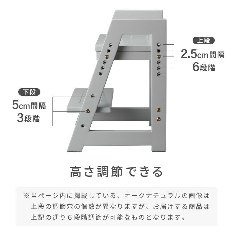 ・上段、下段ともに高さ調整可能です。上段は2.5cmピッチなのでより細かく高さ調整可能