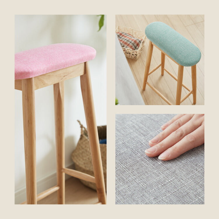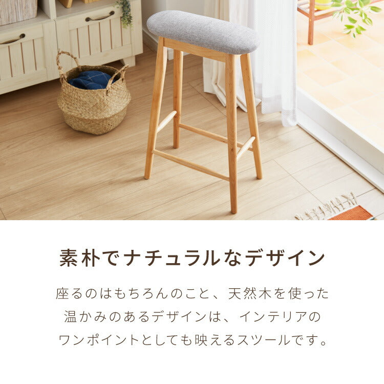 ファブリックキッチンスツール 足置き付き ハイスツール 天然木 無垢材 アルダー材 木製スツール ウッドスツール キッチンスツール 木目 シンプル おしゃれ 北欧 木製椅子 カウンタースツール(代引不可)
