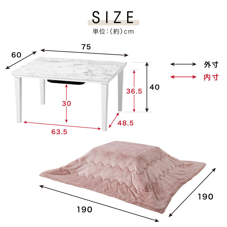 大理石調 カジュアルこたつ 布団付き 2点セット テーブル+掛け布団 75×60 炬燵 コタツ 北欧 メレンゲタッチ とろけるこたつ布団 ふわとろ かわいい 可愛い センターテーブル ローテーブル おしゃれ(代引不可)