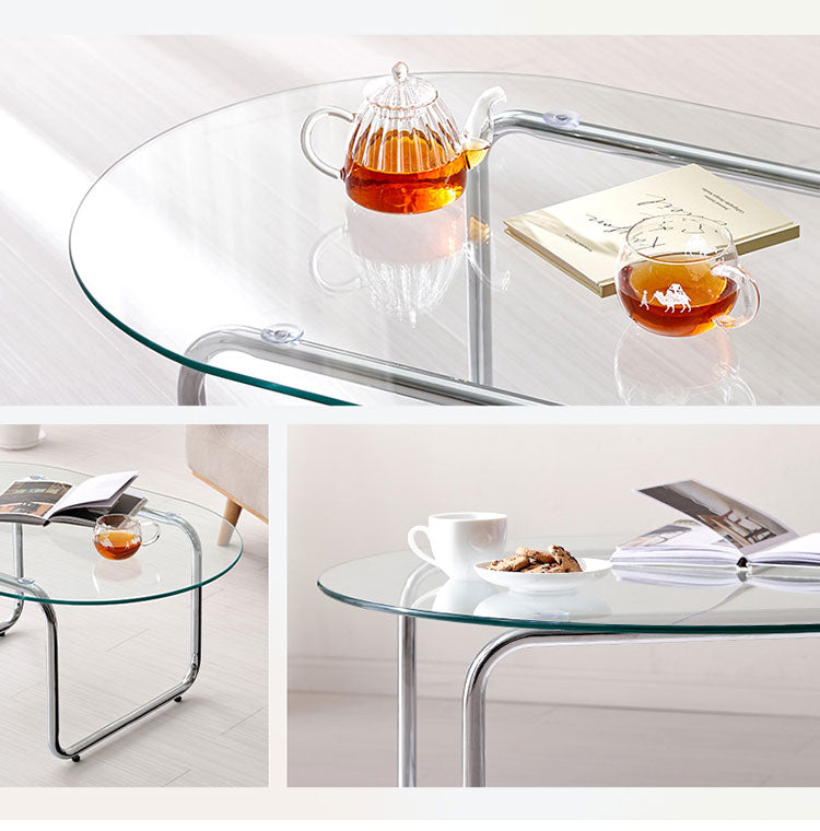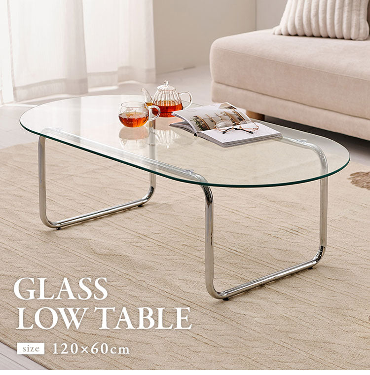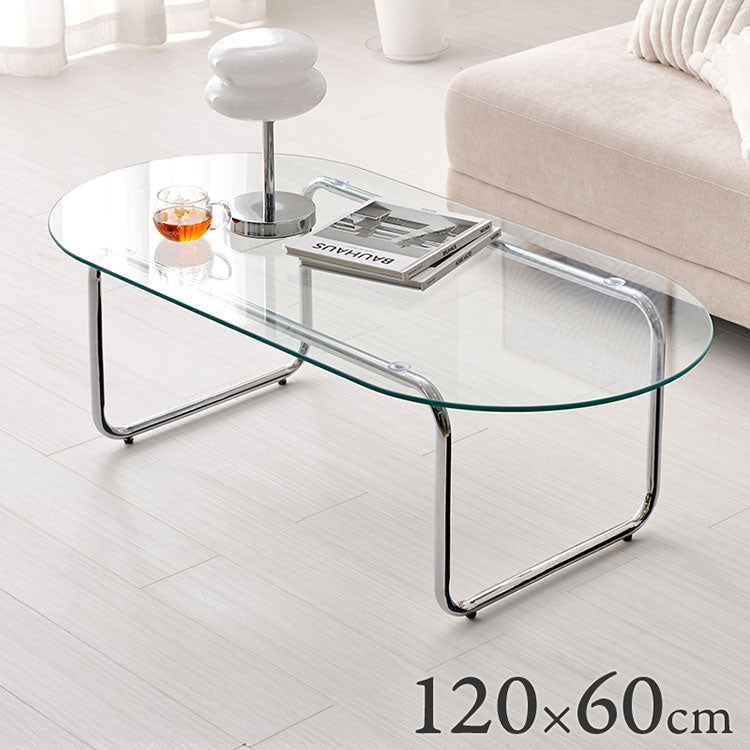 ガラステーブル 幅120cm 円形 おしゃれ 丸 ローテーブル センターテーブル ガラス 円型 楕円 シルバー クリア テーブル 北欧 韓国インテリア 可愛い かわいい オーバル シンプル コンパクト 机(代引不可)