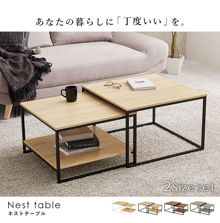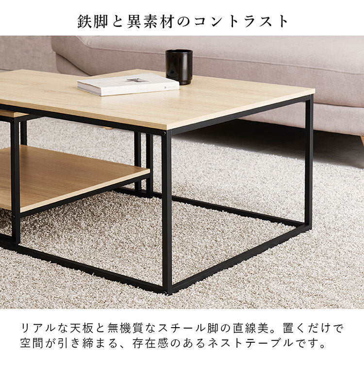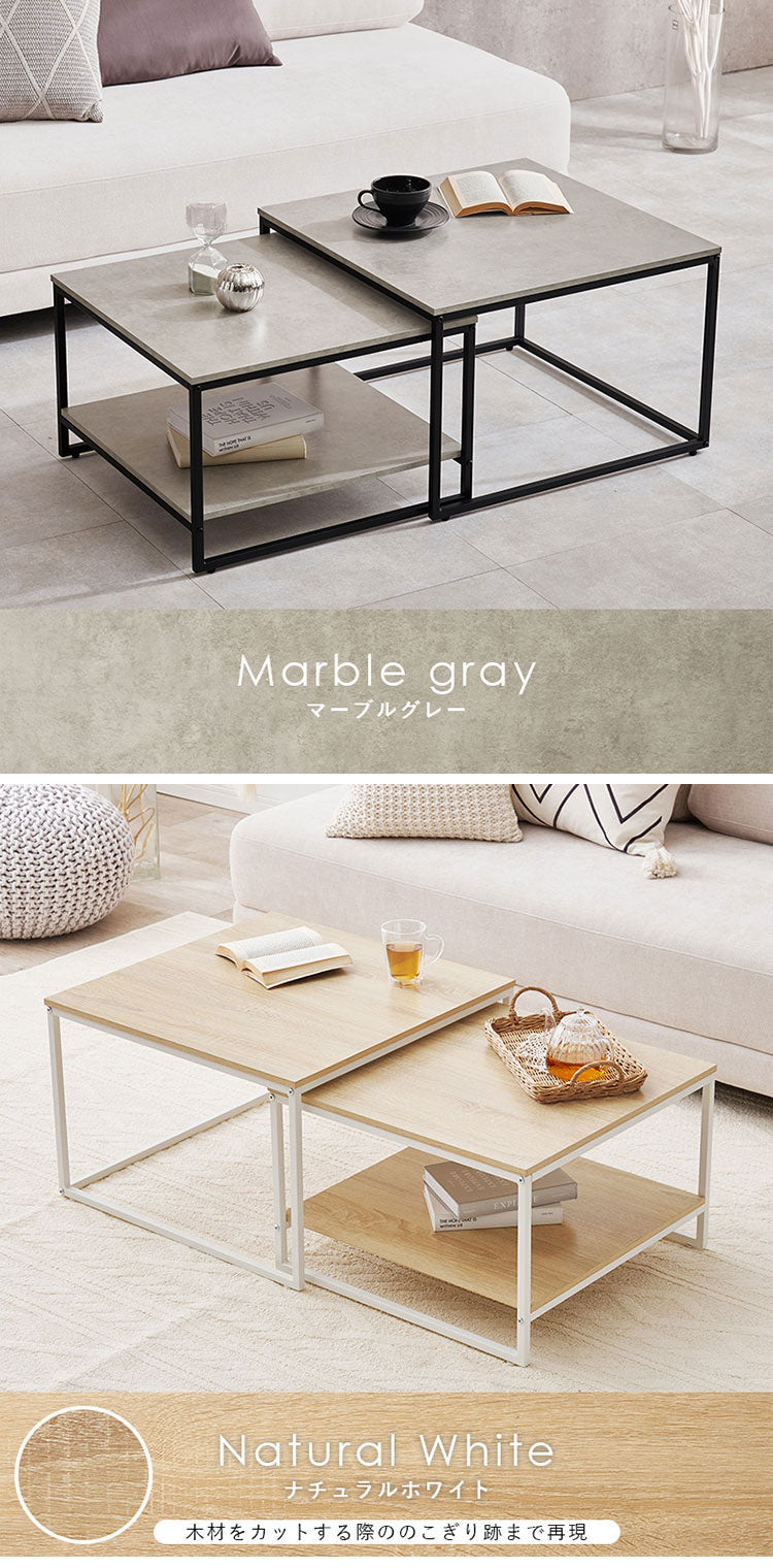 ネストテーブル 2サイズセット 選べる天板 木目調 セラミック調 ローテーブル センターテーブル ソファテーブル 机 テーブル ネスト 棚付き 北欧 おしゃれ(代引不可)